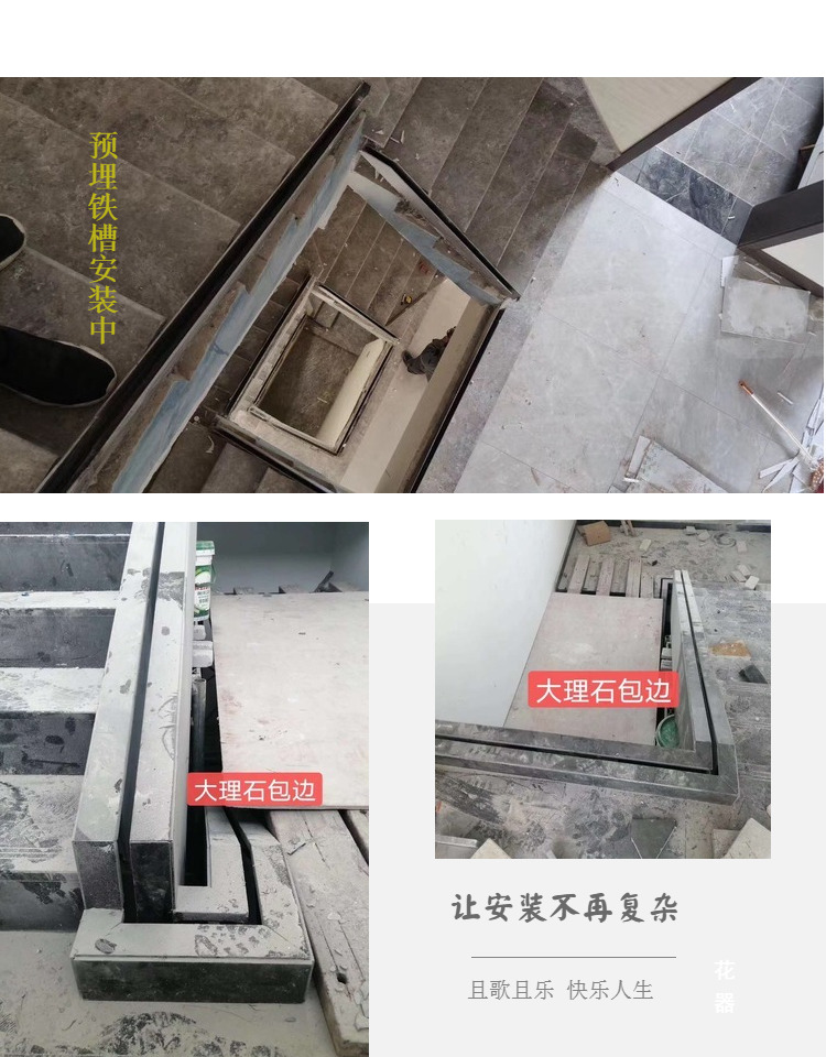 Cầu thang lan can không khung kính sàn có rãnh đế nhôm sắt hình chữ U rãnh hành lang ban công lan can dự án tùy chỉnh ưu đãi đặc biệt