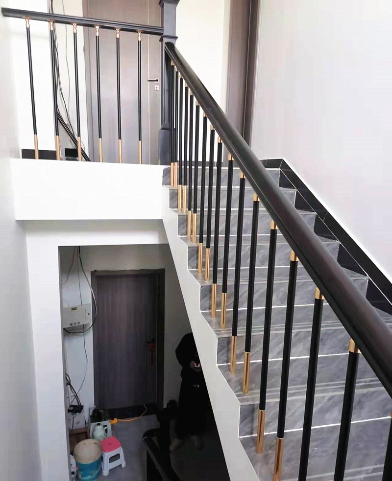 Cầu thang lan can lan can tùy chỉnh cửa sổ hiện đại lan can biệt thự lan can ban công sắt rèn trong nhà hợp kim nhôm vàng vòng thanh ánh sáng sang trọng