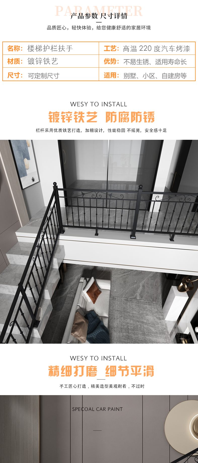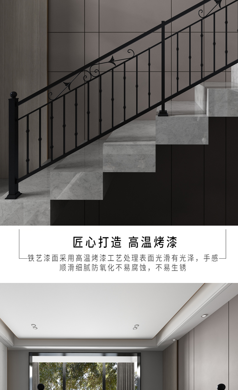 Cầu thang sắt lan can tùy chỉnh hàng rào bảo vệ gác mái hành lang bay cửa sổ ban công đơn giản hiện đại vững chắc hàng rào gỗ cực lan can