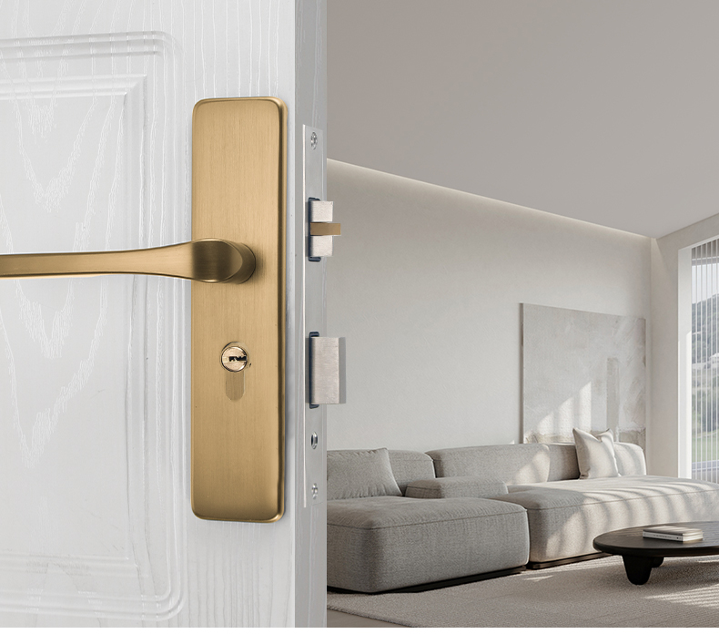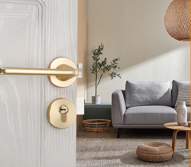 Chải vàng vàng đồng vàng trong nhà khóa cửa phòng ngủ phòng cửa gỗ tay cầm khóa chia từ im lặng