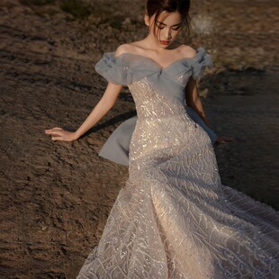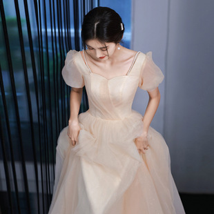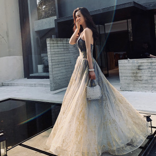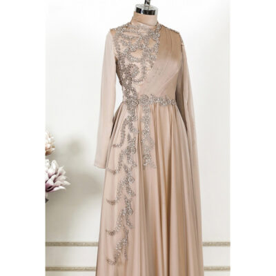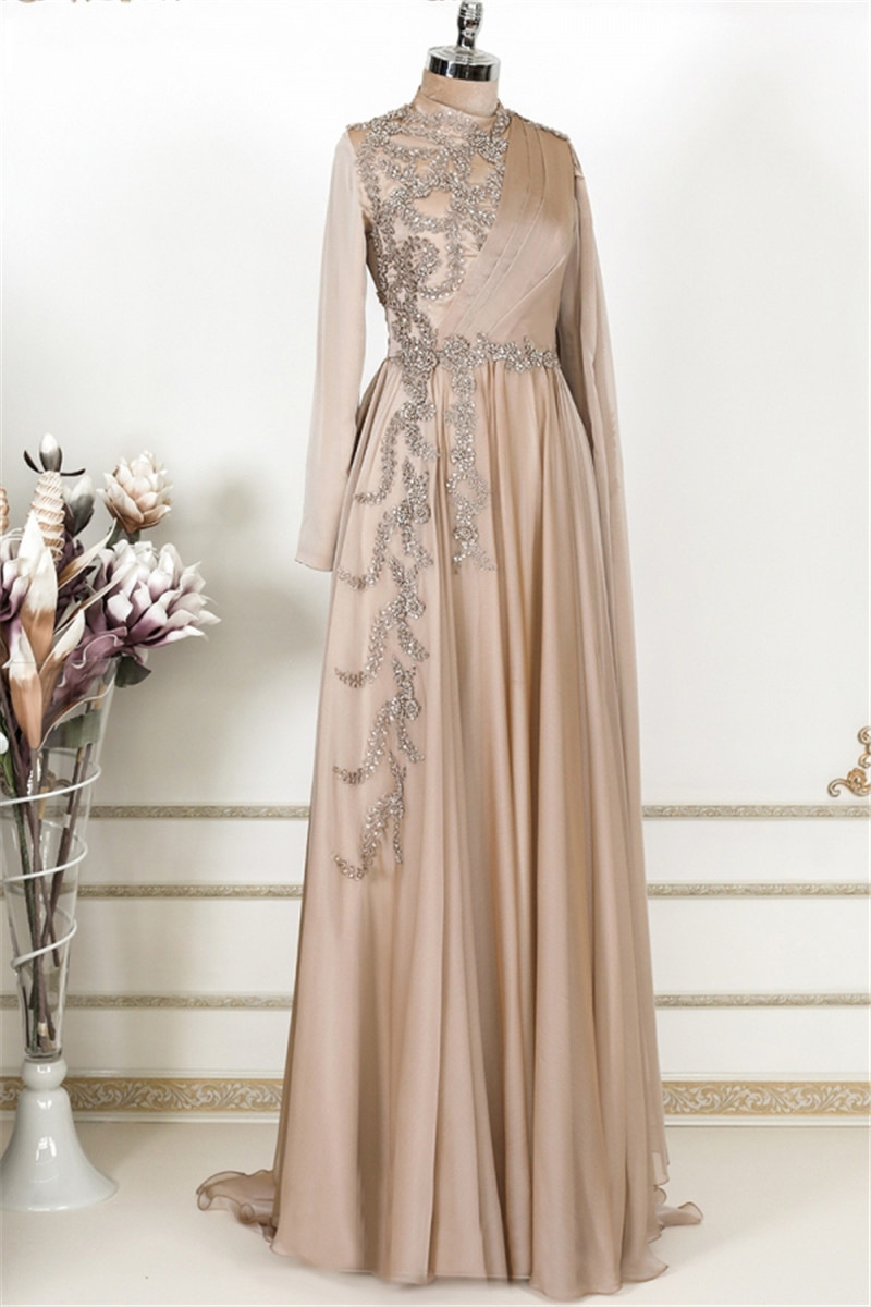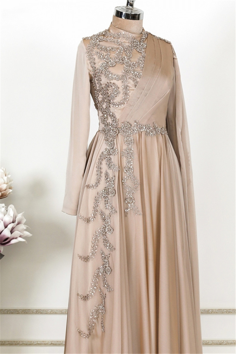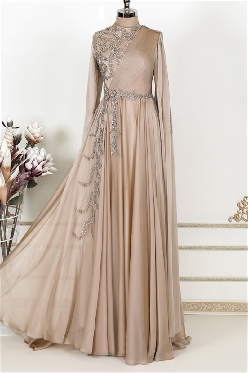 Champagne Hồi Giáo Dạ Hội Ả Rập Dubai Tay Dài Dự Tiệc Trang Trọng Đầm Maroc Áo Dây Dạ Hội