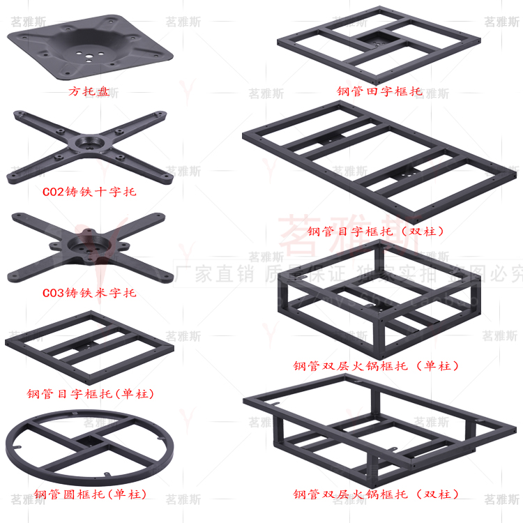四方托盘:钢板 目字框托:钢管 米字托:铸铁 |