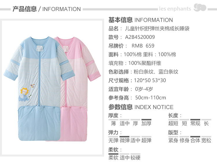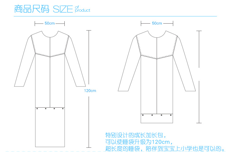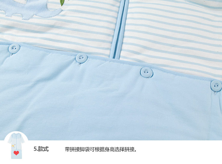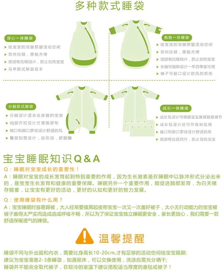 1、此成长睡袋适合年龄是0-6岁。两只袖管可脱卸,袖子装拉链。护袖口设计。