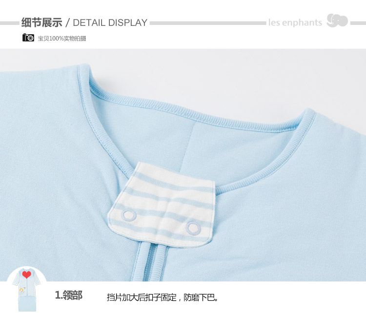 2、中间拉链一直到底,不会伤到宝宝幼嫩的肌肤。中间拉链为对开拉链,方便给宝宝换尿布,下巴有保护,防止拉链碰伤宝宝下巴。