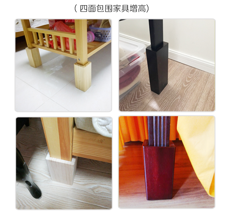 比如 内径长10宽10增高10就代表可以放下10*10 厘米的家具脚,安装后比原来高10厘米