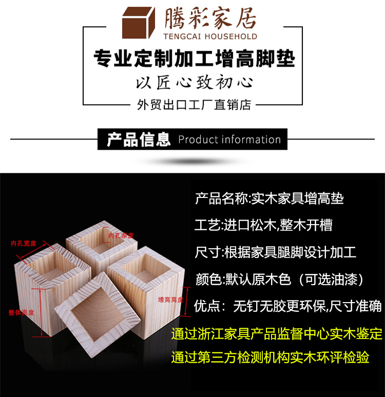 Chân giường nâng cao tùy chỉnh chân bàn nâng cao đồ nội thất gỗ rắn nâng cao tạo tác ghế sofa hỗ trợ chân nâng cao bàn cà phê chân gỗ khối