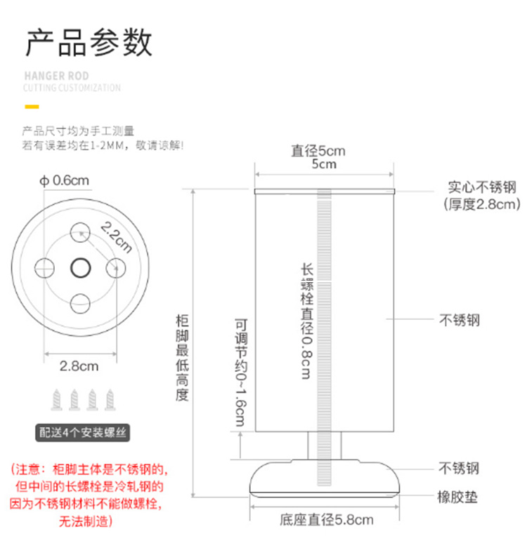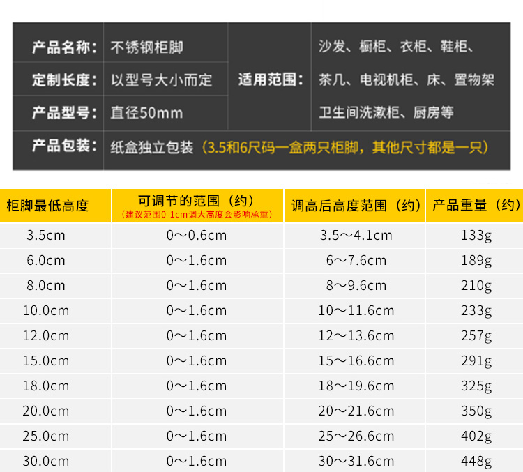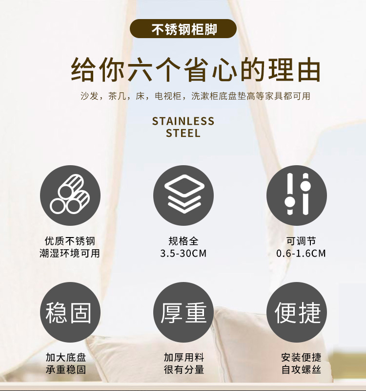 Chân tủ bằng thép không gỉ có thể điều chỉnh đồ nội thất chân ghế sofa hỗ trợ chân giường bàn cà phê hỗ trợ chân bàn chân bàn TV Chân tủ