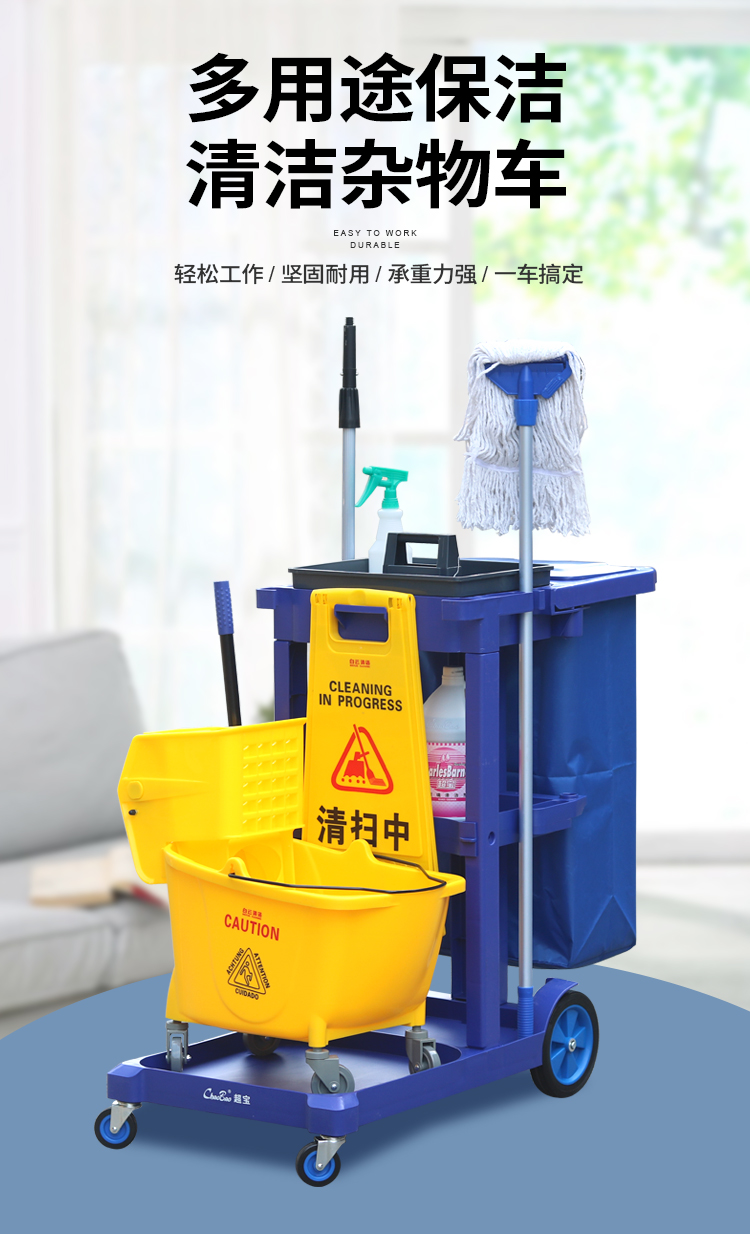 Chaobao làm sạch xe đa chức năng làm sạch xe đẩy khách sạn khách sạn phòng khách sạn công cụ dọn phòng xe thùng rác xe vải lanh