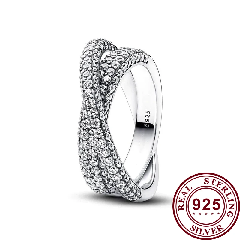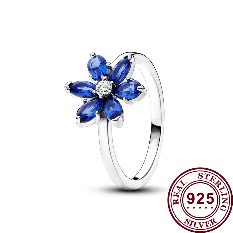 925 Sterling Silver New Women's Hot Exquisite Blue Diamond Shining Pear Flower PANDORA Logo Ring Festival Fashion DIY Charm Jewelry