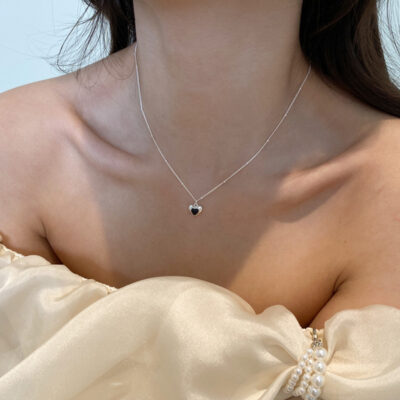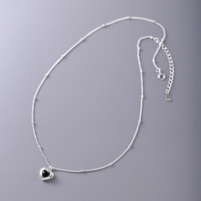 Chất liệu bạc 925 tình yêu vòng cổ mã não đen dễ thương ngọt ngào nữ tính trái tim tính khí xương quai xanh dây chuyền sản phẩm mới 2023 1174G