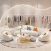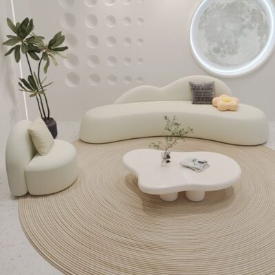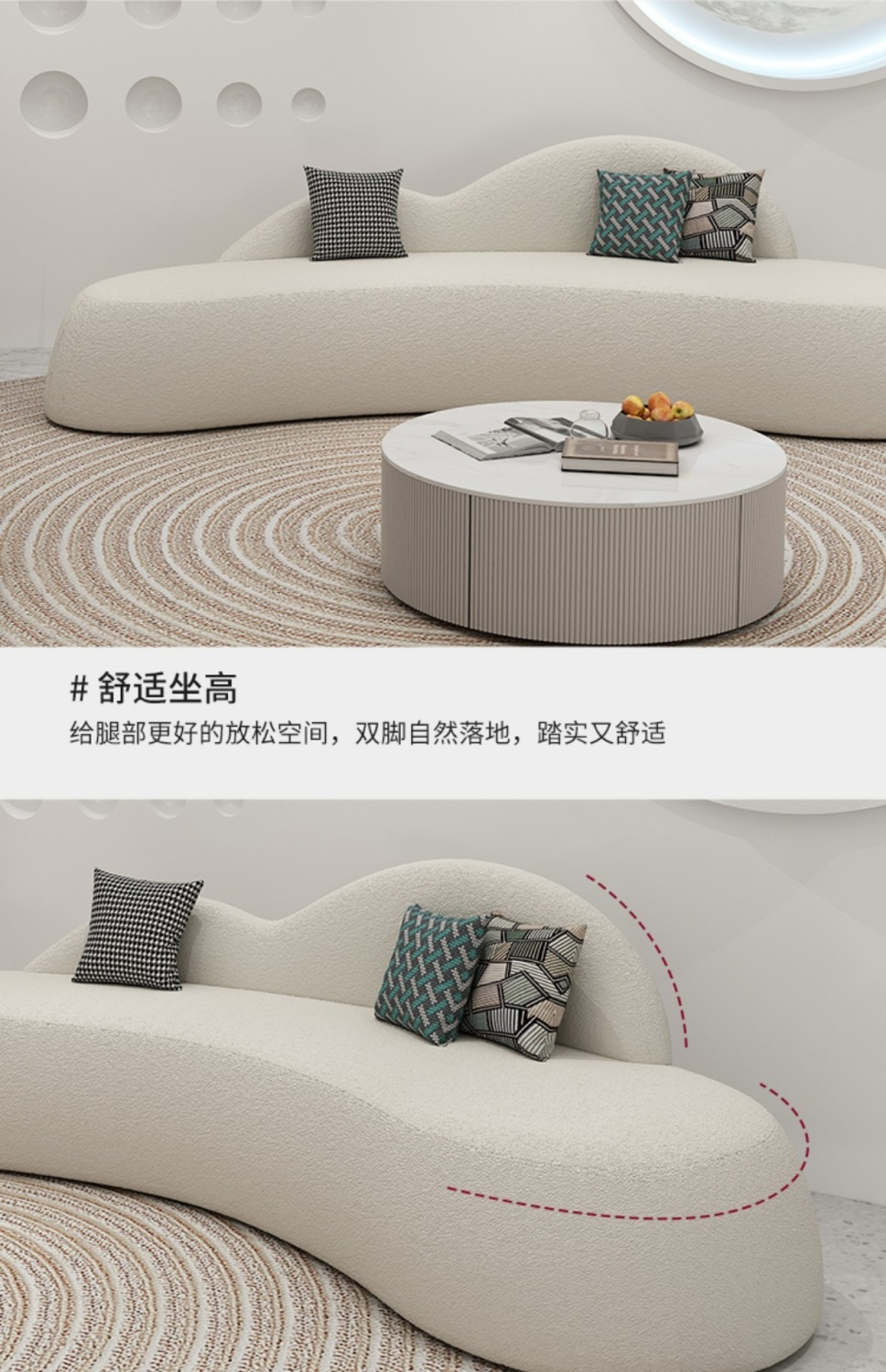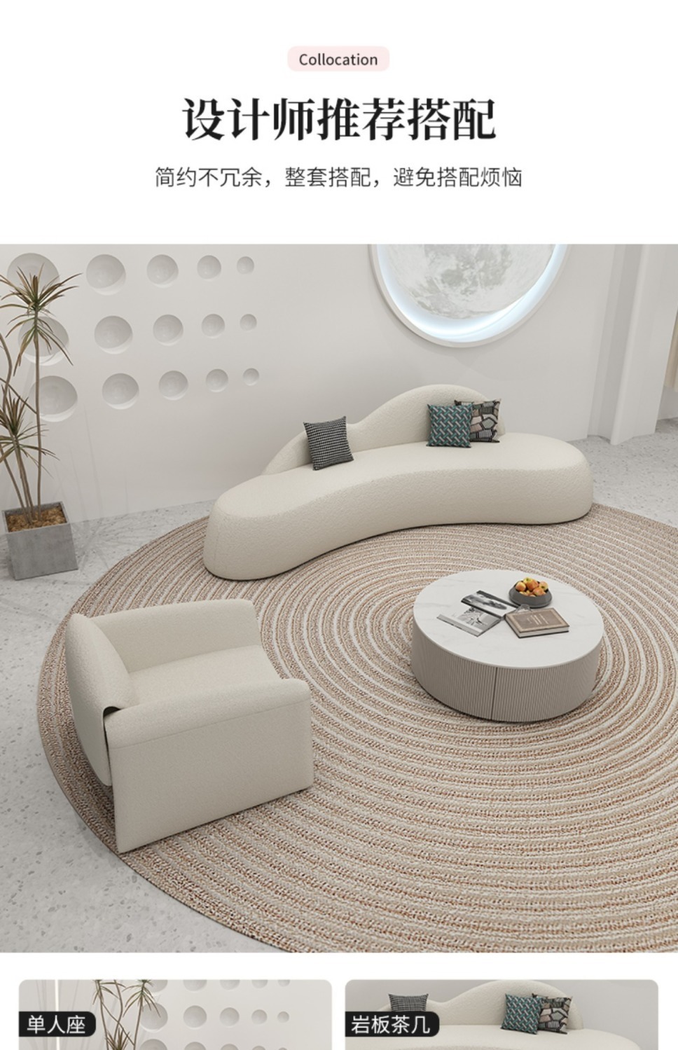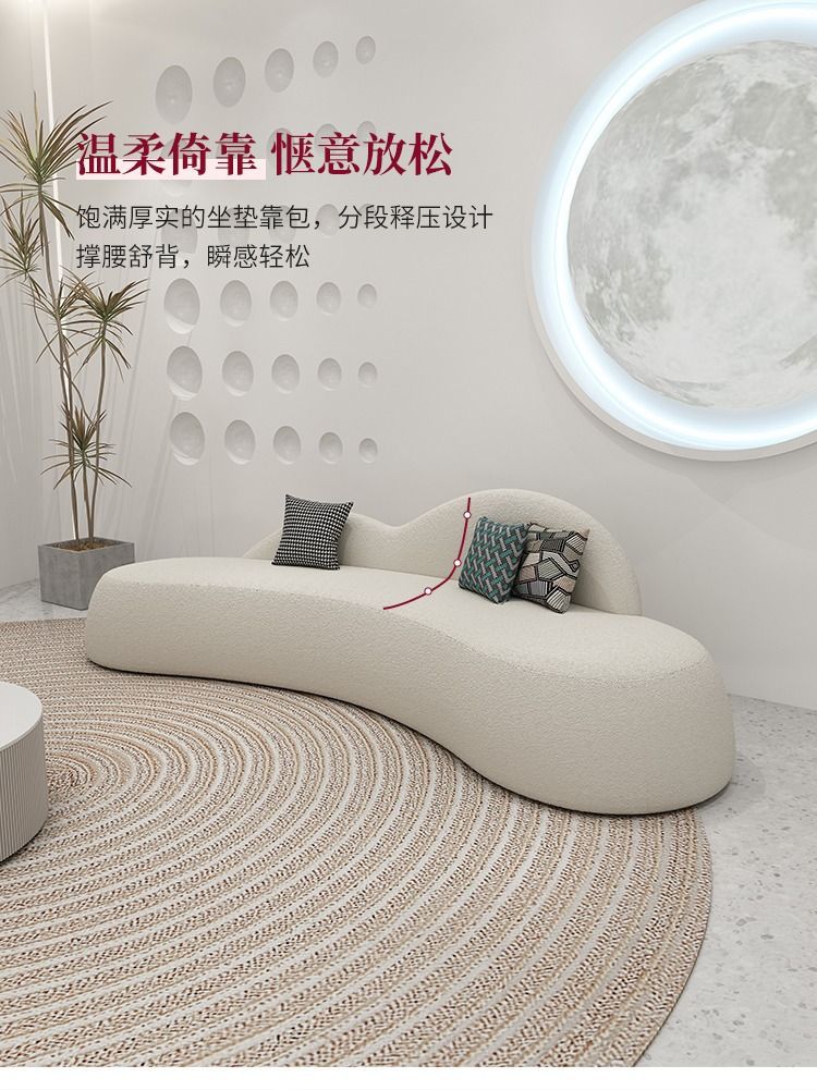 Chất liệu vải sang trọng nhẹ sofa hình dạng đặc biệt căn hộ nhỏ ins phong cách thẩm mỹ viện cửa hàng quần áo khu vực nghỉ ngơi cong tiếp nhận lưới phong cách màu đỏ