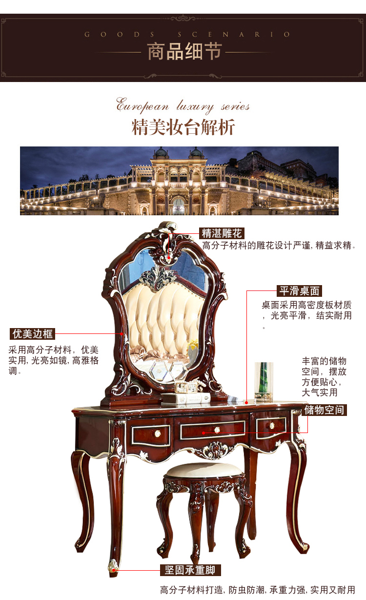 Châu Âu Bàn Trang Điểm Pháp Bàn Trang Điểm Mục Vụ Tủ Trang Điểm Chạm Khắc Bàn Trang Điểm Mỹ Gương