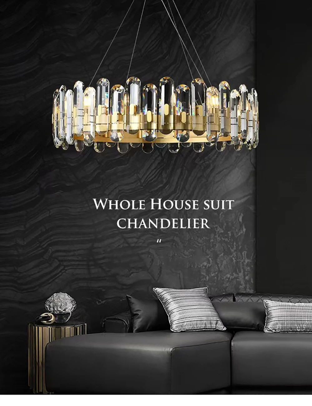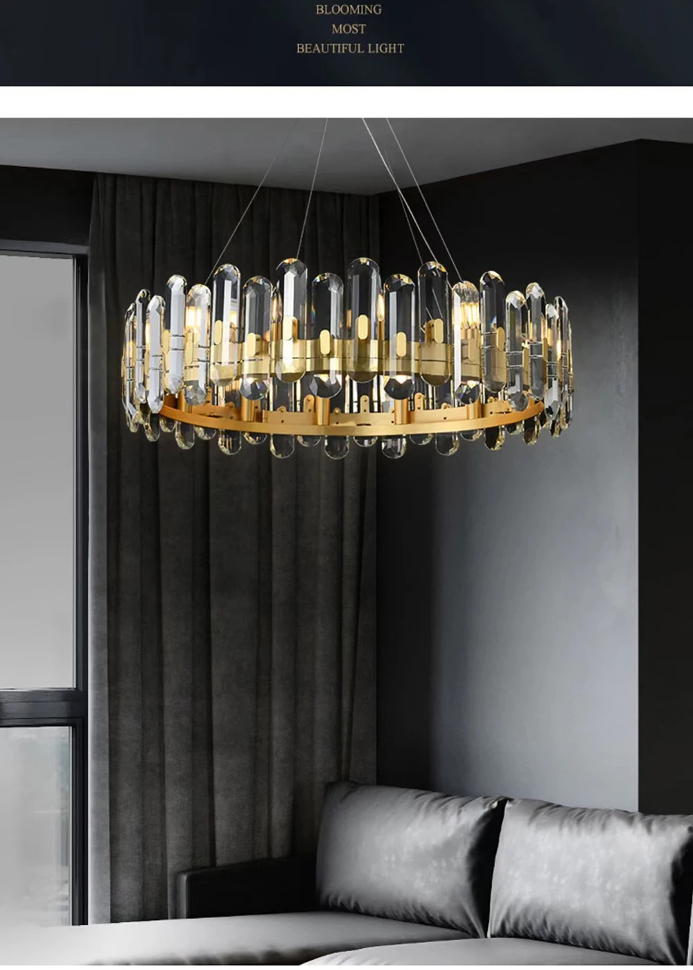 Europe Luxury Brass Crystal Chandelier Led Gold Pendant Light Classical Cristal Lustres Home Decor Light Fixture for Living Room