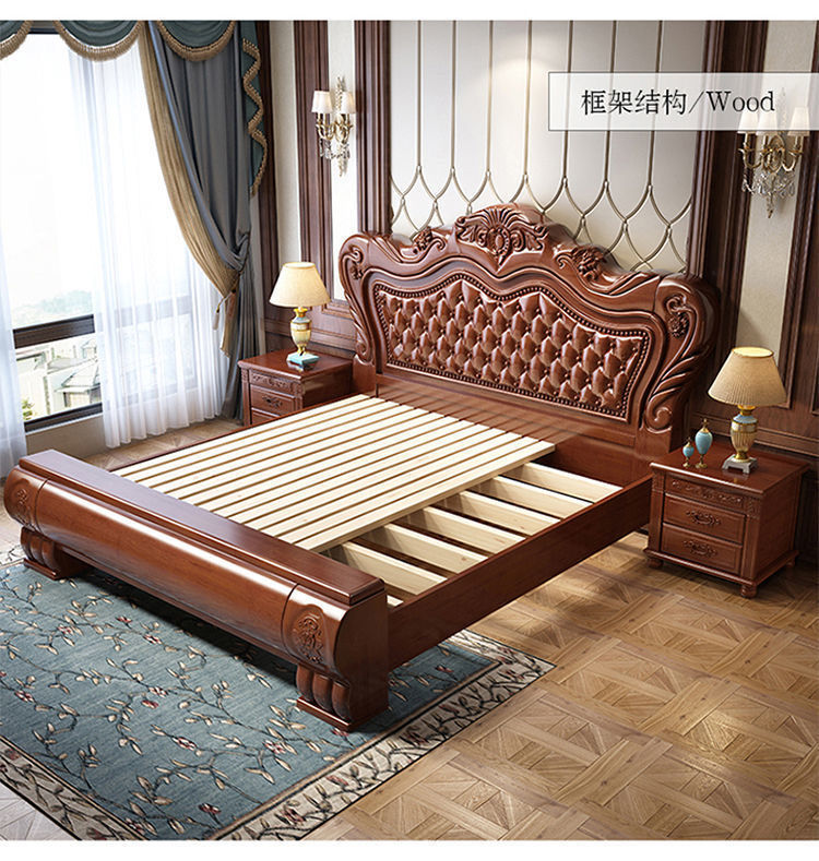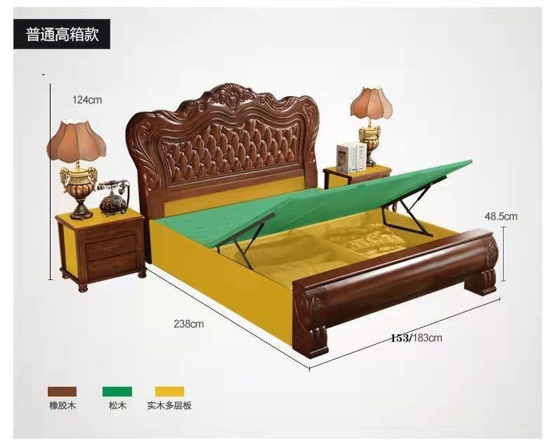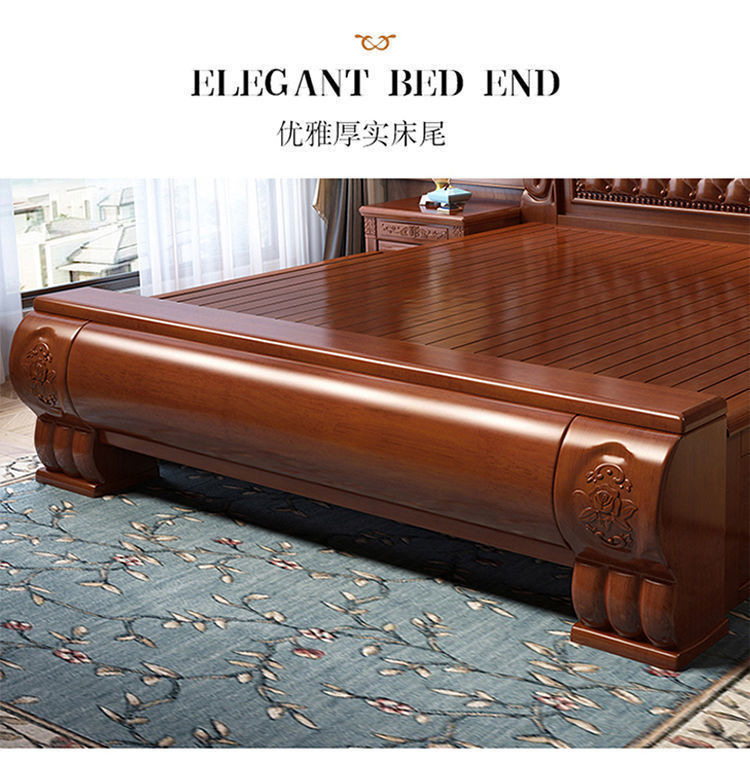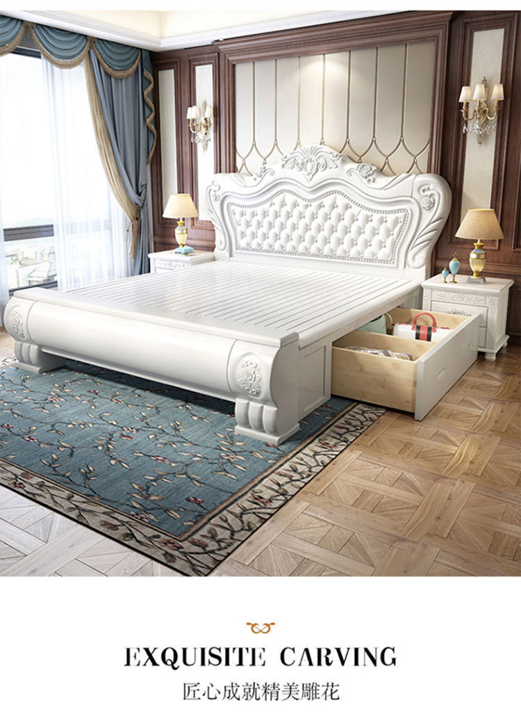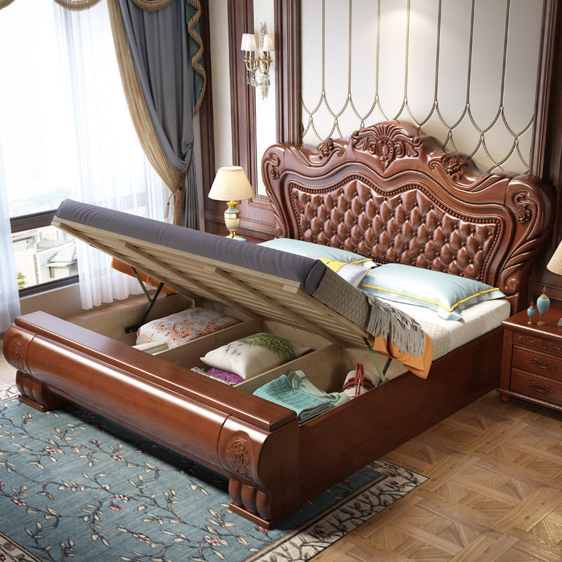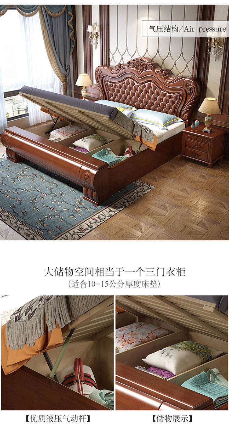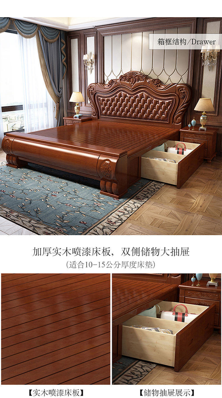 Châu Âu Gỗ Chắc Chắn Giường 1.8M Cưới Giường 1.5M Cao Cấp Chạm Khắc Giường Công Chúa Phòng Ngủ Chính Giường Lớn Hộp Cao lưu Trữ Giường Nhà