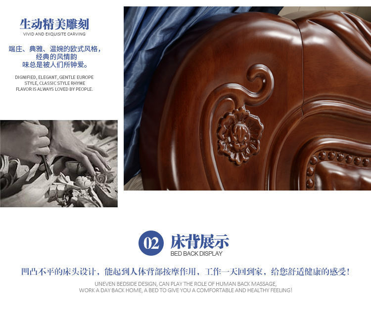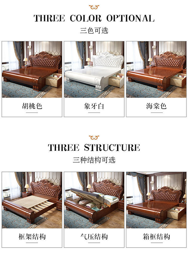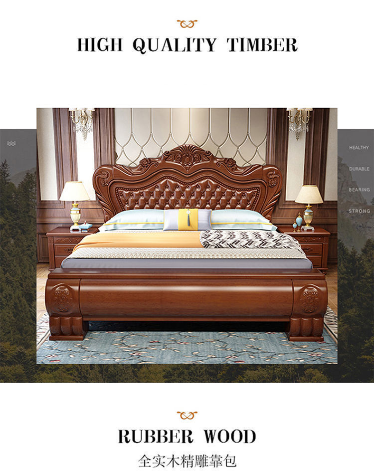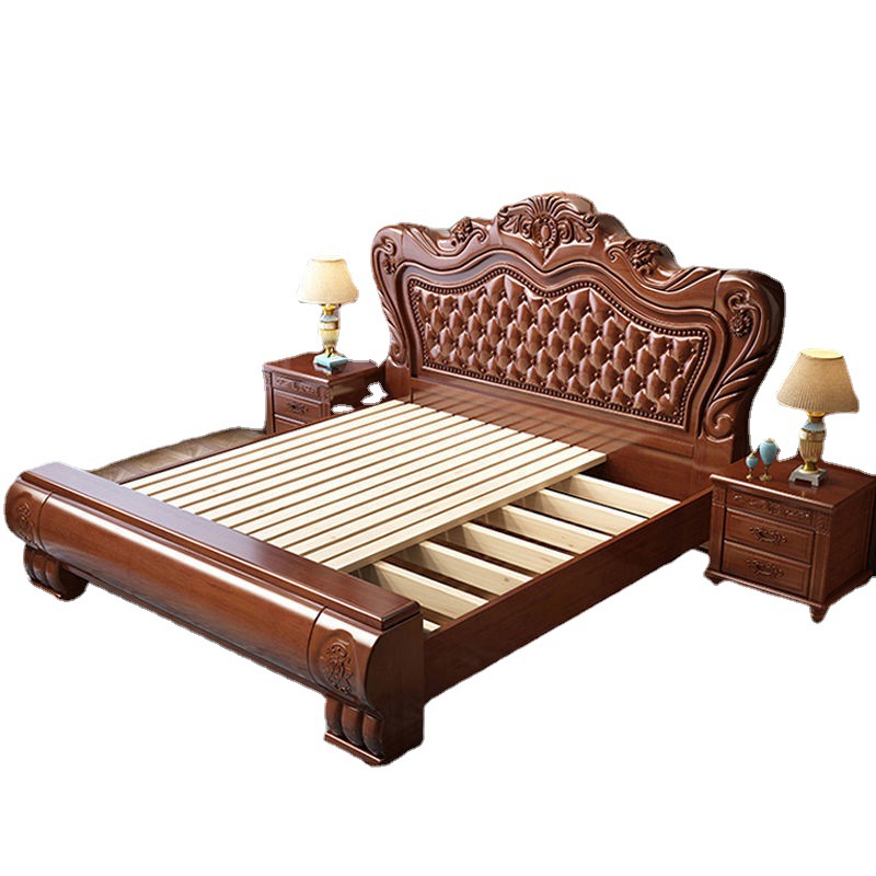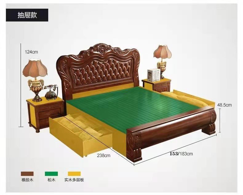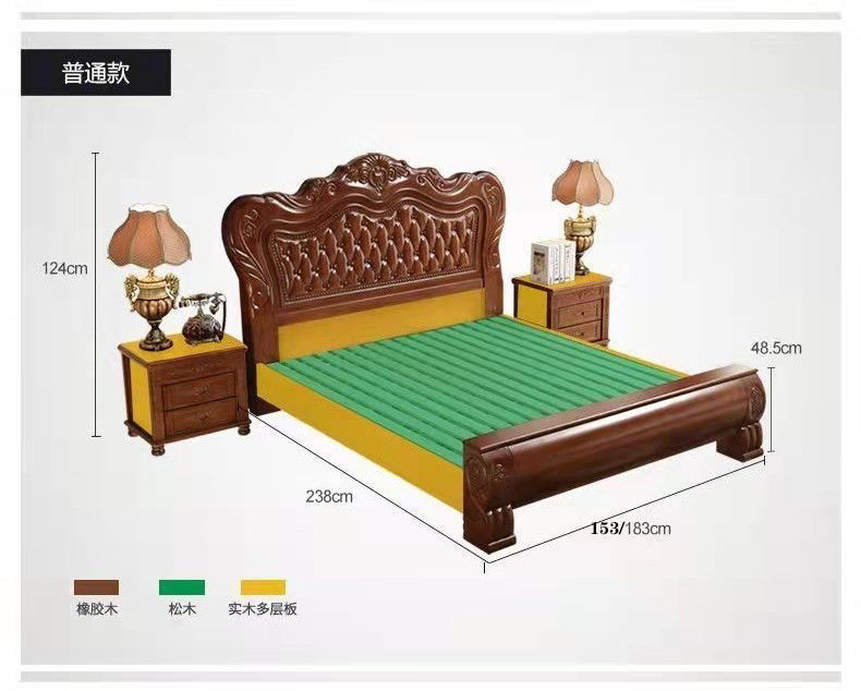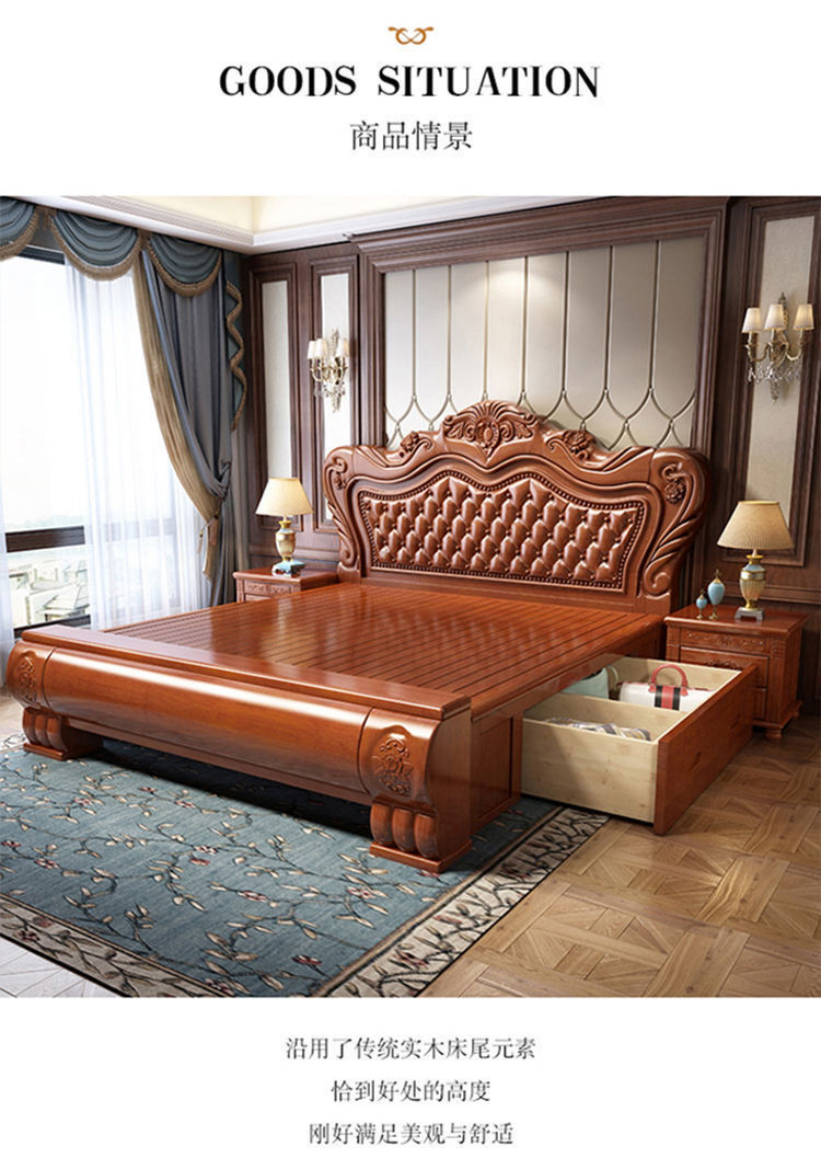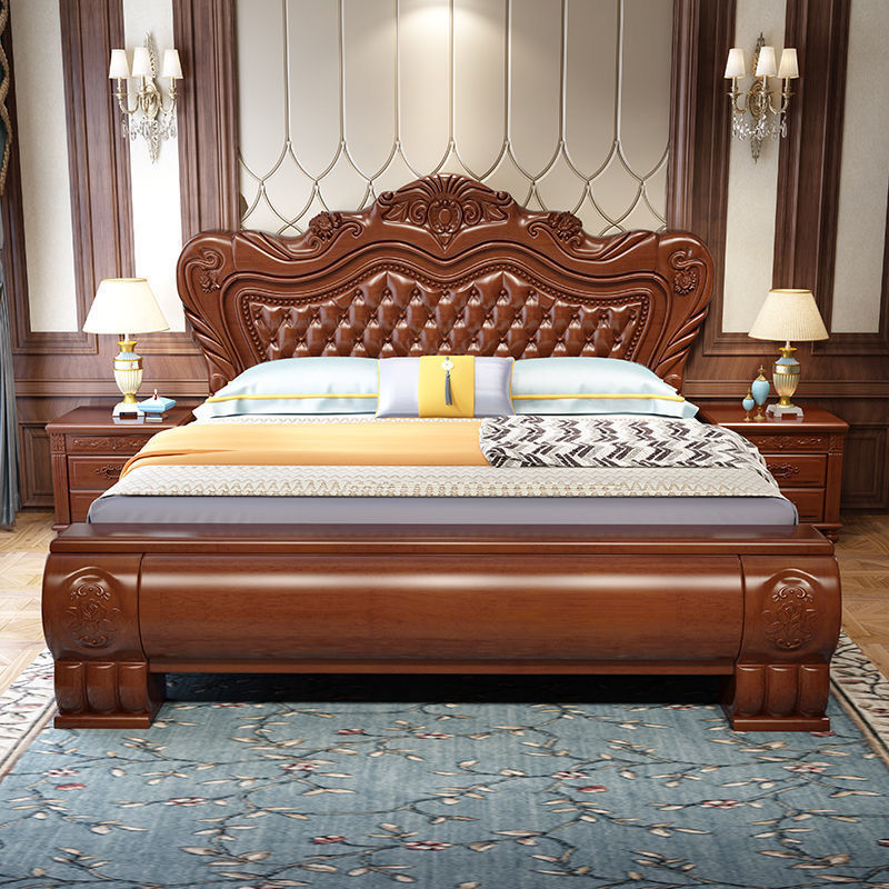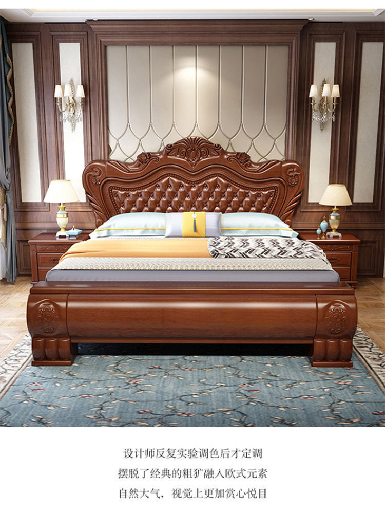 Châu Âu Gỗ Chắc Chắn Giường 1.8M Cưới Giường 1.5M Cao Cấp Chạm Khắc Giường Công Chúa Phòng Ngủ Chính Giường Lớn Hộp Cao lưu Trữ Giường Nhà