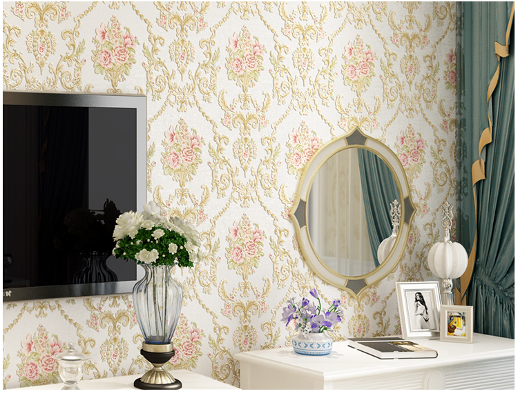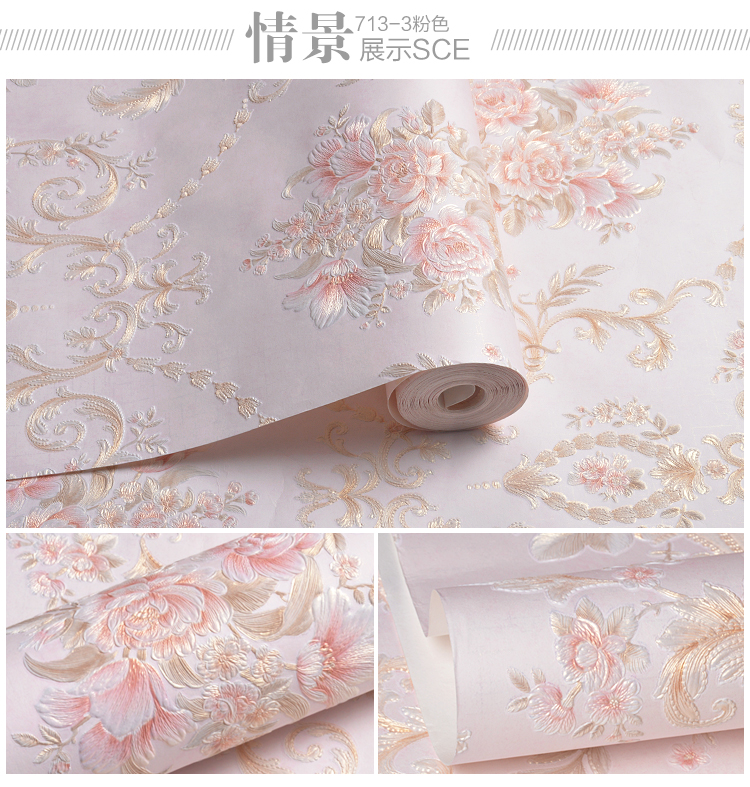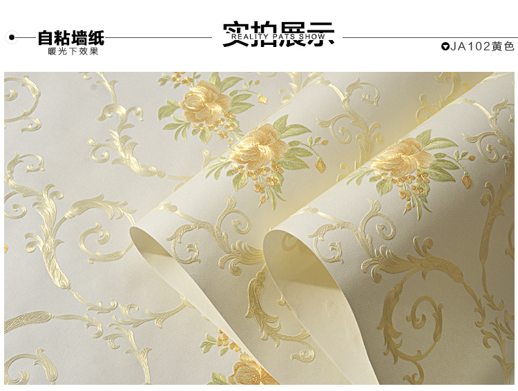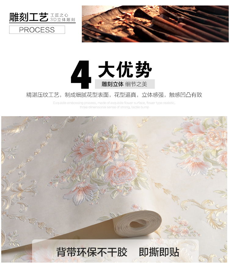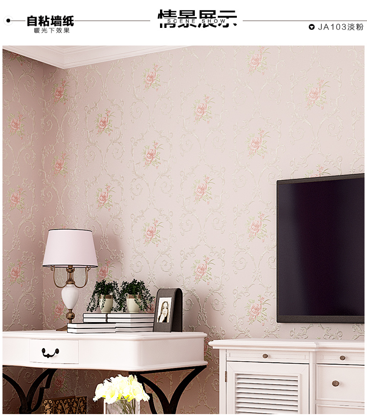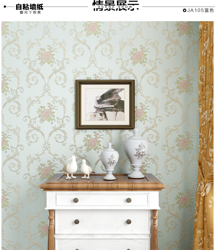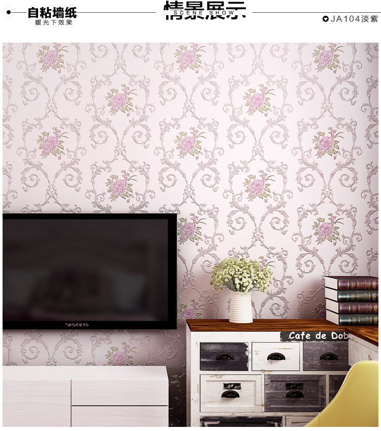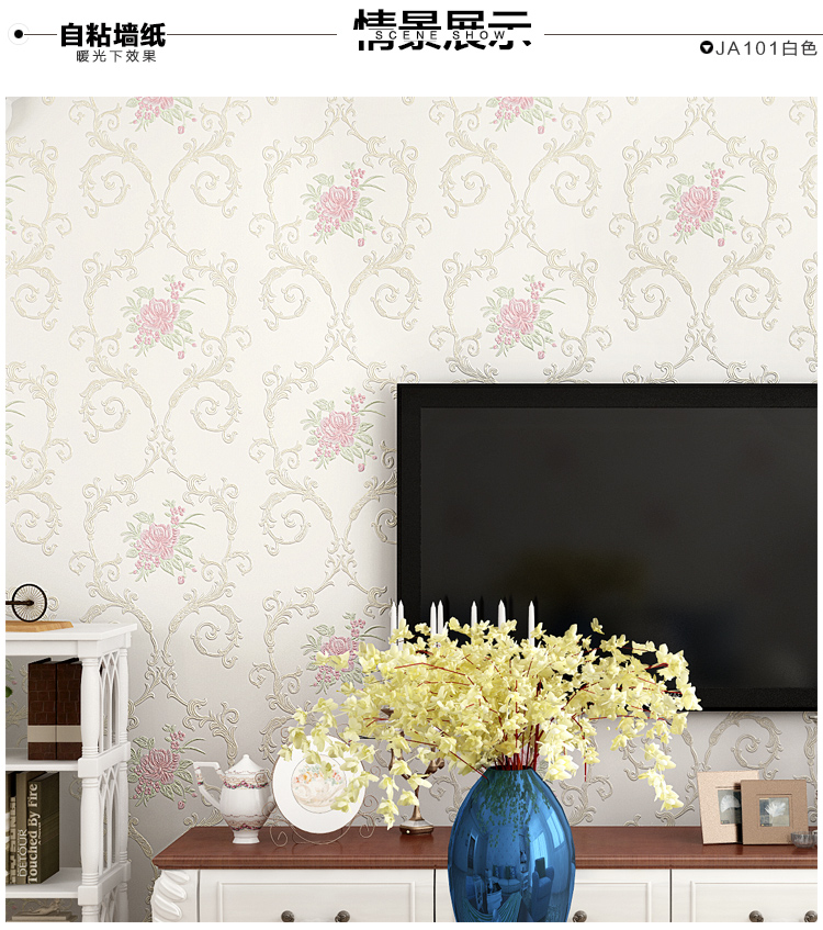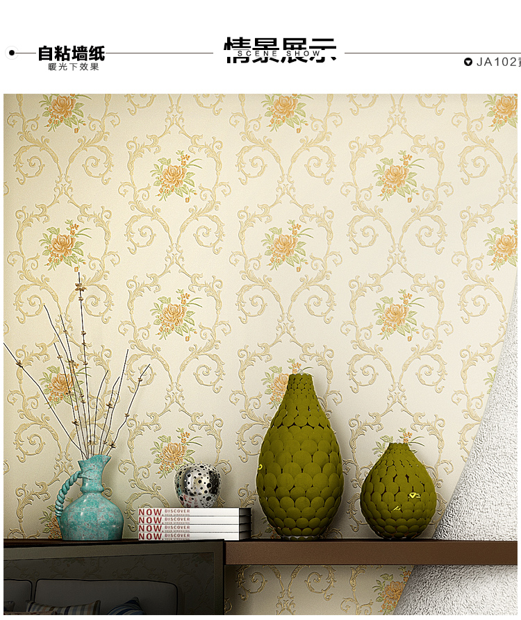 Châu âu mục vụ 3D tự dán giấy dán tường phòng ngủ ấm áp trang trí phòng khách TV ba chiều nền tường phòng giấy dán tường