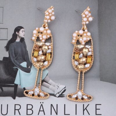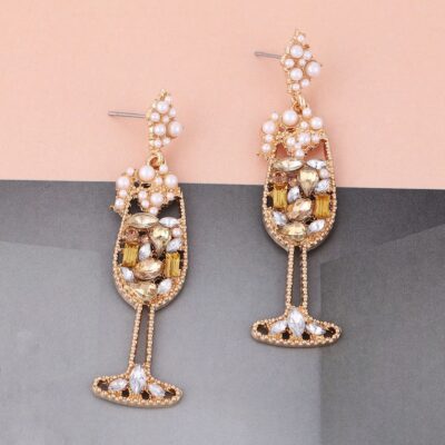 Châu Âu và Châu Mỹ phong cách cổ điển giả ngọc trai khảm rhinestone hình dạng ly rượu thời trang tính khí cao cấp bông tai cảm giác xuyên biên giới bán buôn bán chạy