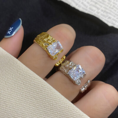 Châu Âu và Châu Mỹ Sen sê-ri lá thiếc hoa văn giấy Đẹp sang trọng zircon nhẫn kim cương nữ sang trọng thích hợp mở sáng tạo phóng đại thiết kế nhẫn nữ
