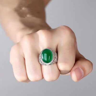 Châu Âu và Châu Mỹ thời trang giả mã não Lingteng nhẫn vàng cá tính đơn giản nam carnelian emerald nhẫn bán buôn