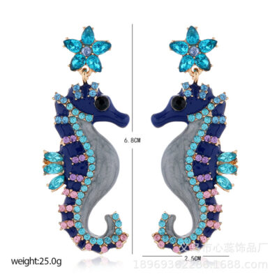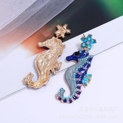 Châu Âu và Châu Mỹ Thời Trang Kim Loại Phóng Đại Hình Học Cá Ngựa Hoạt Hình Hình Dầu Kim Cương Ngôi Sao Năm Cánh Bông Tai Nhà Máy Trực Tiếp Bông Tai