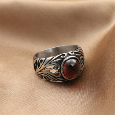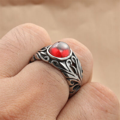 Châu Âu và Châu Mỹ trang sức thép titan nhẫn hồng ngọc phong cách retro hợp thời trang nam Punk thép không gỉ tròn đá quý nhẫn hoa 280623