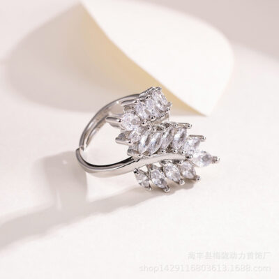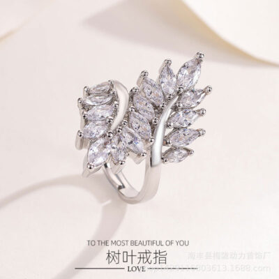 Châu Âu và Hoa Kỳ tỏa sáng tính khí lá nhẫn micro-dát đá quý pha lê phóng đại nhà sản xuất chiếc nhẫn tay món quà trang sức một dropshipping