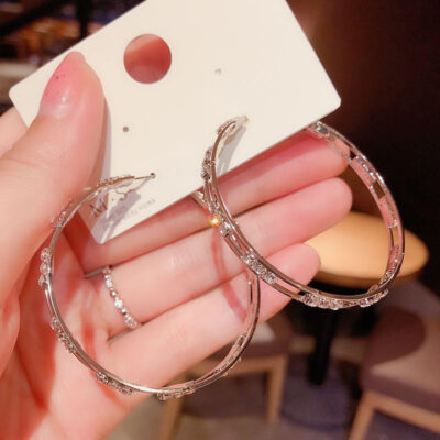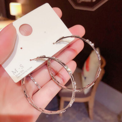 Châu Âu và Mỹ cá tính phóng đại rhinestone bông tai lớn bông tai khí chất thời trang của phụ nữ Internet người nổi tiếng bông tai hợp thời trang bông tai kim bạc 925