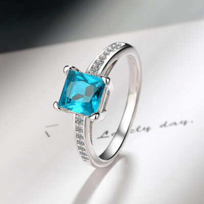 Châu Âu và Mỹ đơn giản bốn móng vuông kim cương zircon công chúa nhẫn xuyên biên giới nhẫn trang sức