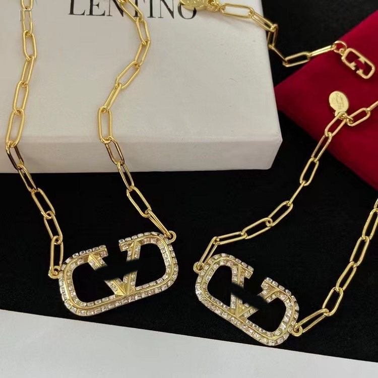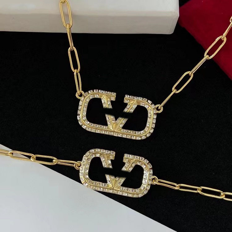 Châu Âu Và Mỹ Hualunjia Mới Chữ V Full Mặt Dây Chuyền Kim Cương Chất Liệu Đồng Thau Huajia Vòng Cổ Kim Cương Giả Bộ Vòng Tay Bán Buôn