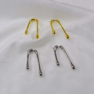Châu Âu và Mỹ ins gió lạnh cao và thấp giọt nước kim loại bóng khí chất thời trang bạc 925 kim hốc lưới bông tai màu đỏ bông tai
