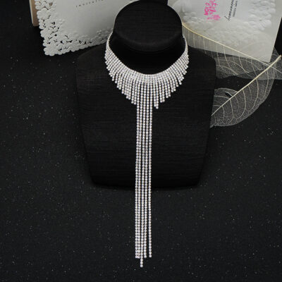 Châu Âu và Mỹ nhẹ thời trang sang trọng pha lê vòng cổ choker nữ đầy kim cương tua vòng cổ gợi cảm phóng đại dây chuyền xương quai xanh dài
