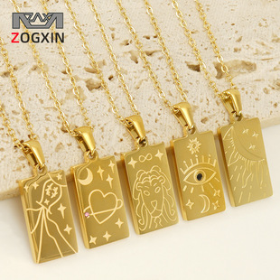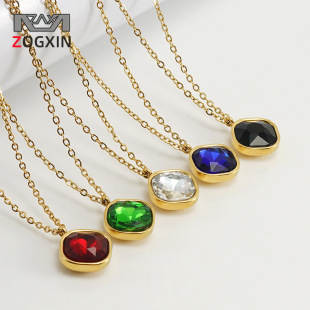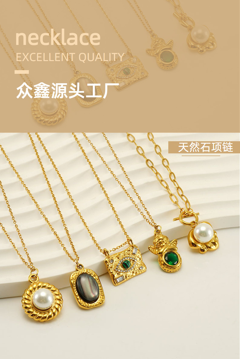 Châu Âu và Mỹ thích hợp thiết kế vòng cổ bằng thép titan nữ thép không gỉ 18K thời trang cao cấp cảm giác mặt dây chuyền bằng đá tự nhiên dây chuyền xương đòn