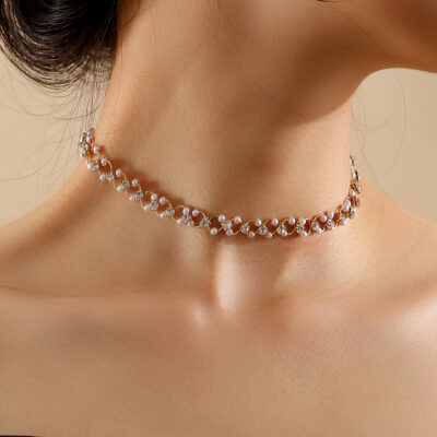 Châu Âu và Mỹ tính khí bán chạy nhất khảm vòng cổ bằng đá sáng tạo đơn giản cổ điển chuỗi xương đòn ngọc trai đầy đủ vòng cổ kim cương chuỗi cổ