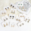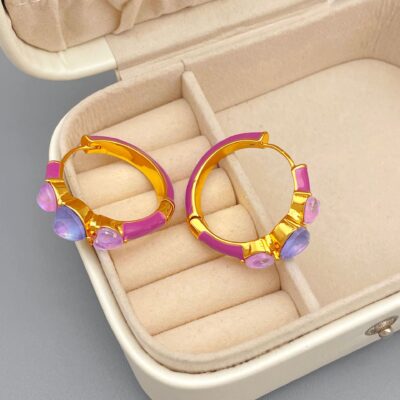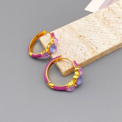 Châu Âu và Mỹ tình yêu mới đá quý khảm hồng nhỏ giọt tráng men thời trang khóa tai cá tính thời trang bông tai cao cấp phụ kiện tai