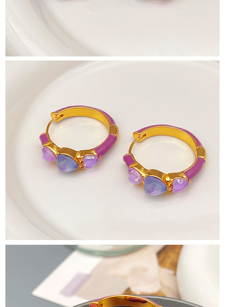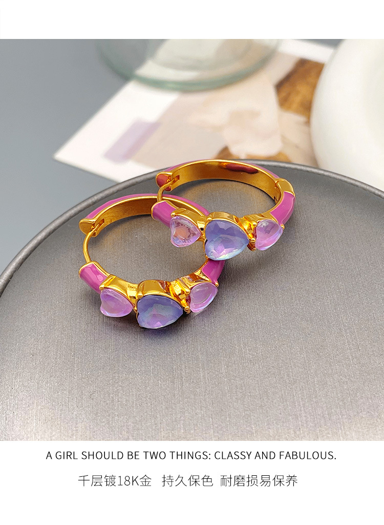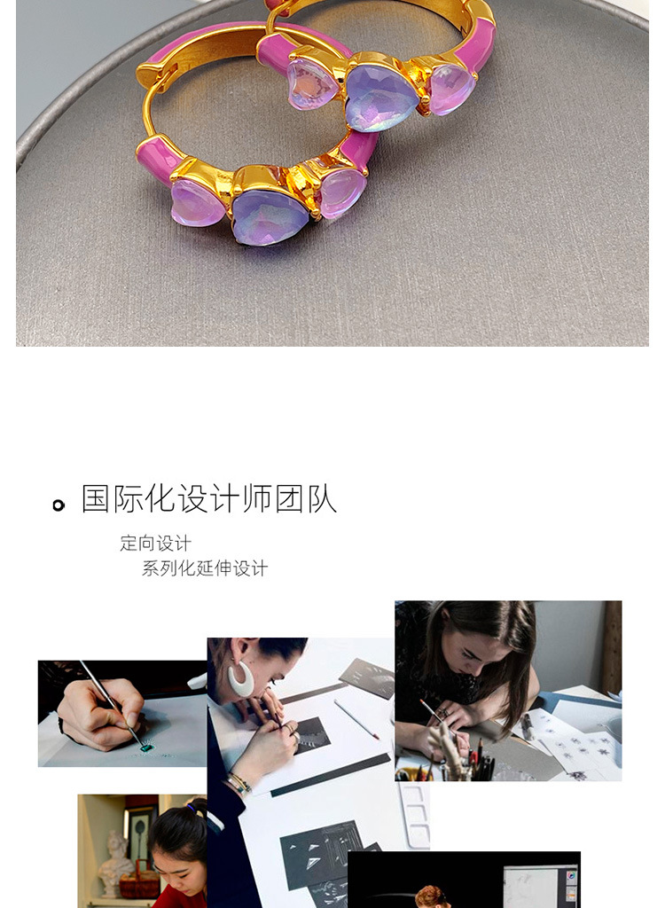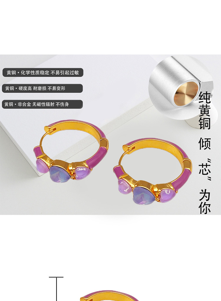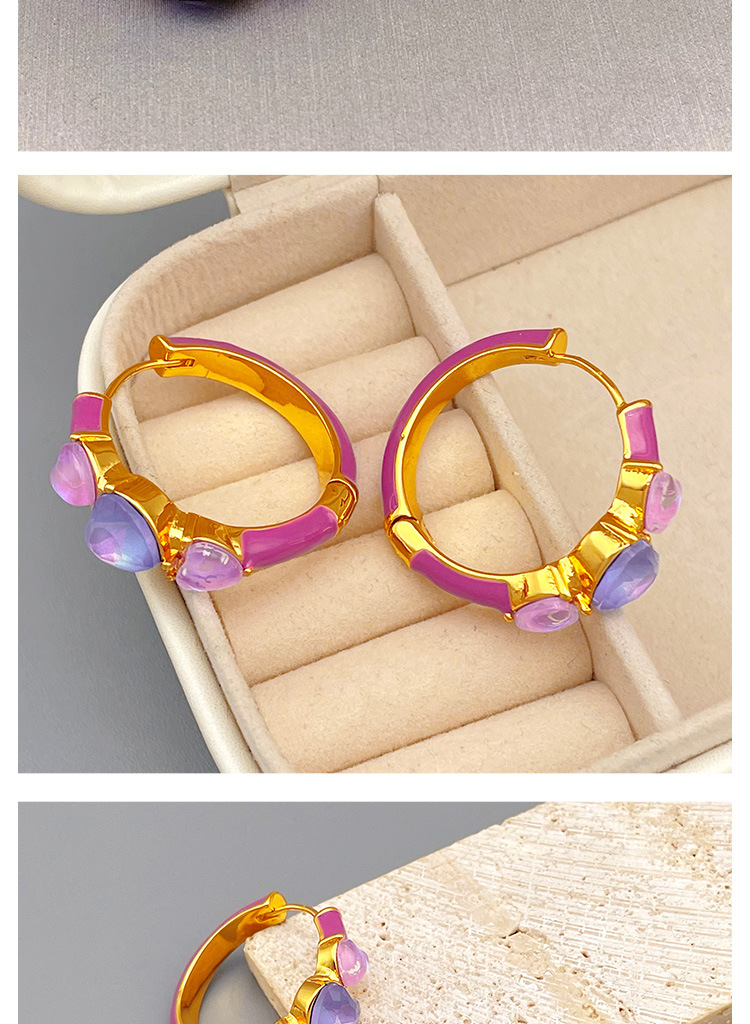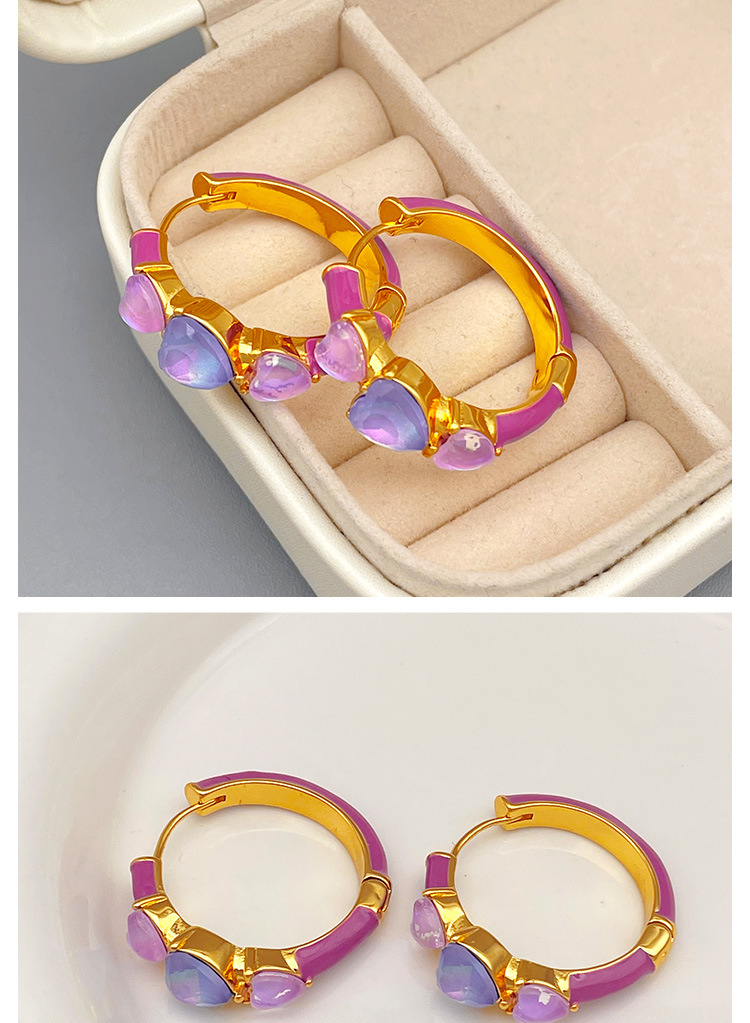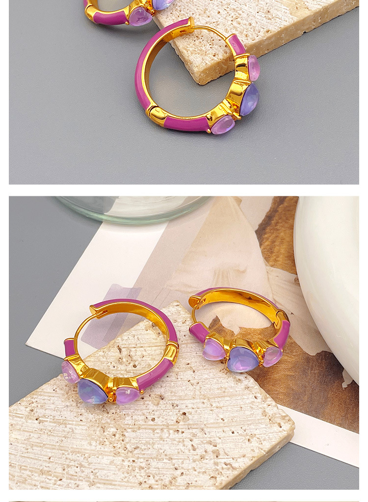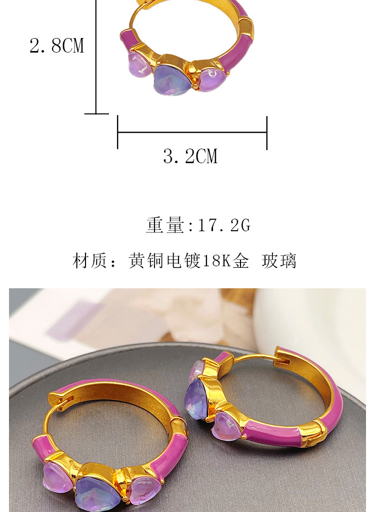 Châu Âu và Mỹ tình yêu mới đá quý khảm hồng nhỏ giọt tráng men thời trang khóa tai cá tính thời trang bông tai cao cấp phụ kiện tai