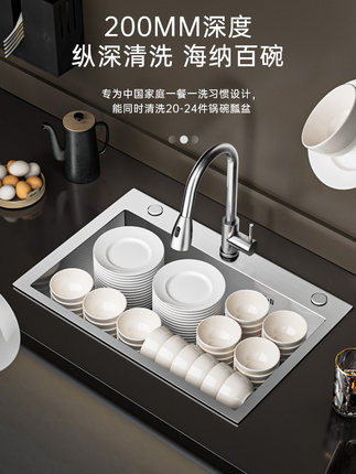 Chậu bếp inox 304 dày 304 một khe lớn dành cho hộ gia đình chậu rửa đặt trên bàn chậu rửa chậu rửa bát 352