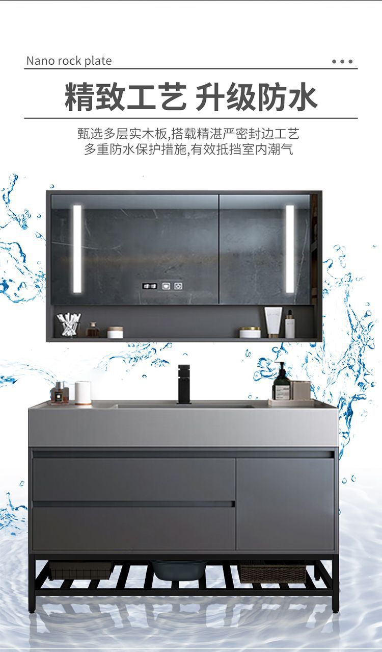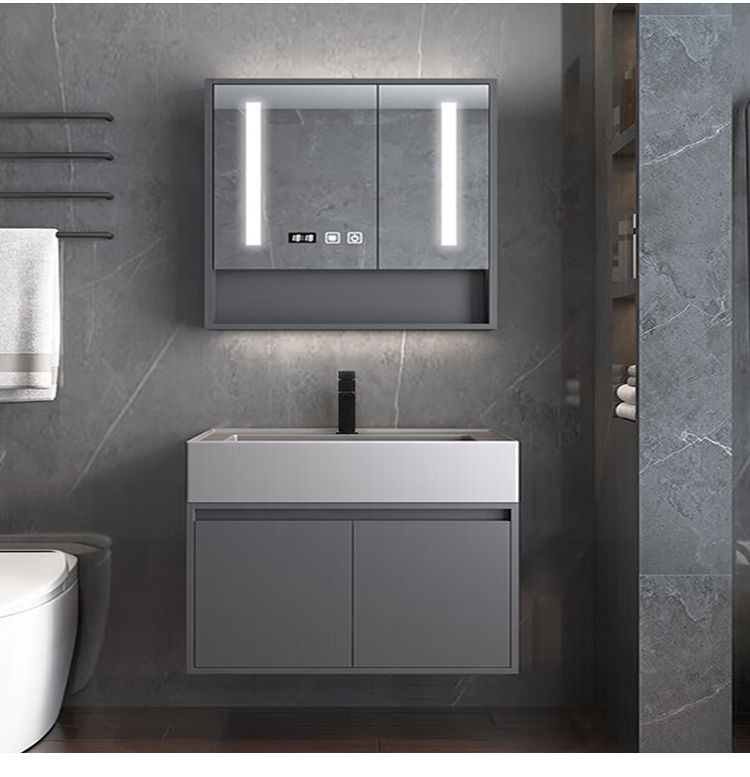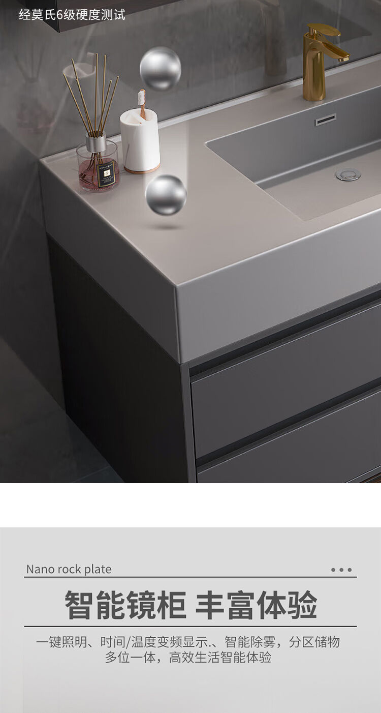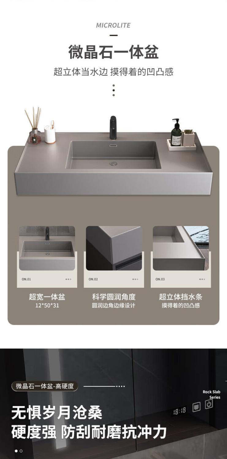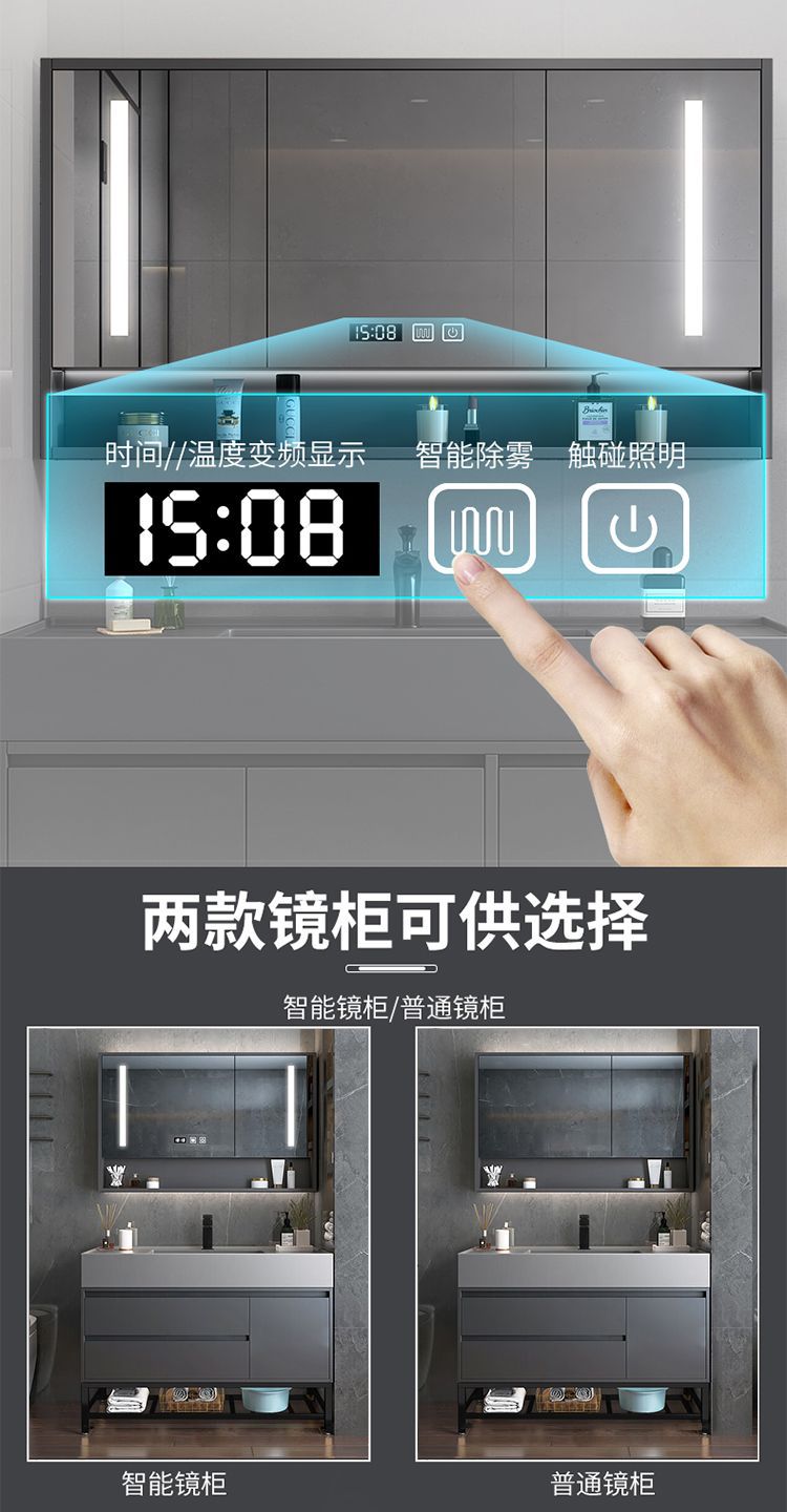 Chậu đá tích hợp đèn tủ phòng tắm thông minh sang trọng kết hợp bồn cầu bệ rửa mặt rửa tay Bộ tủ gương gắn đá