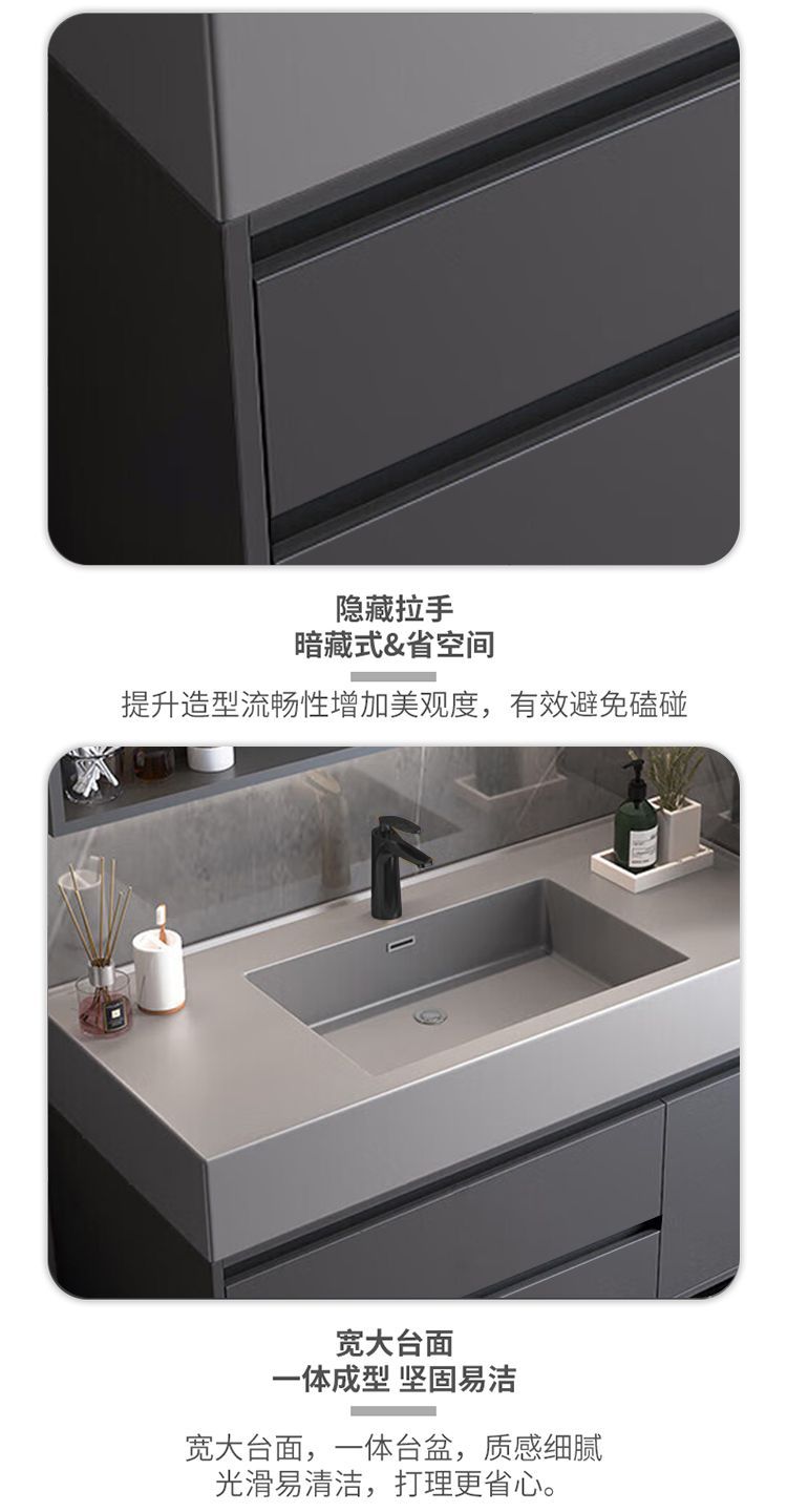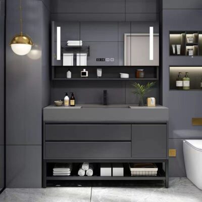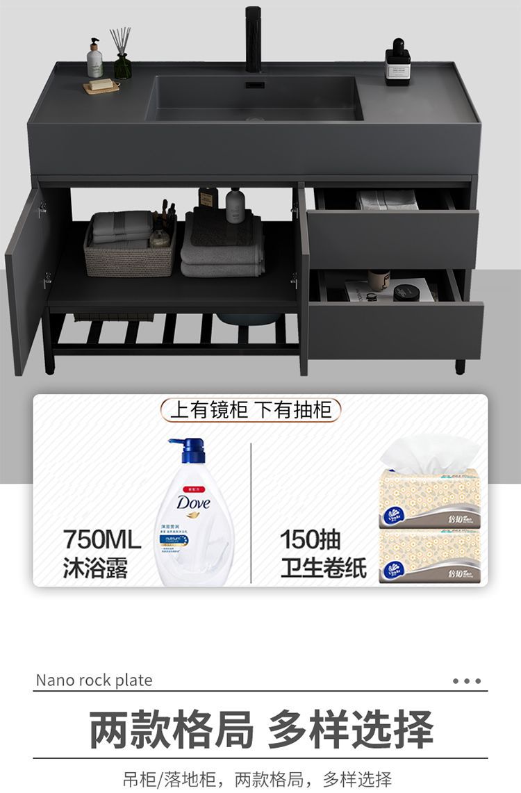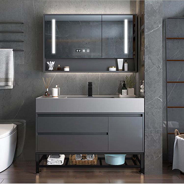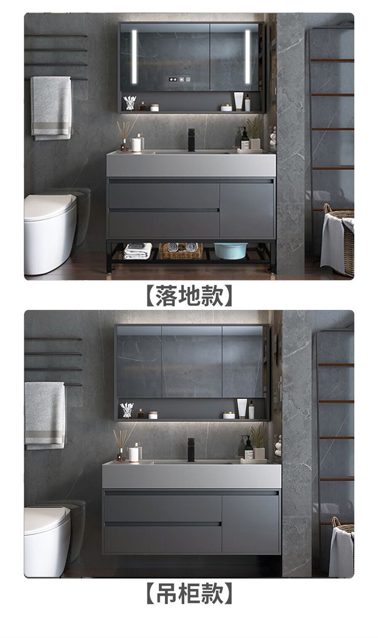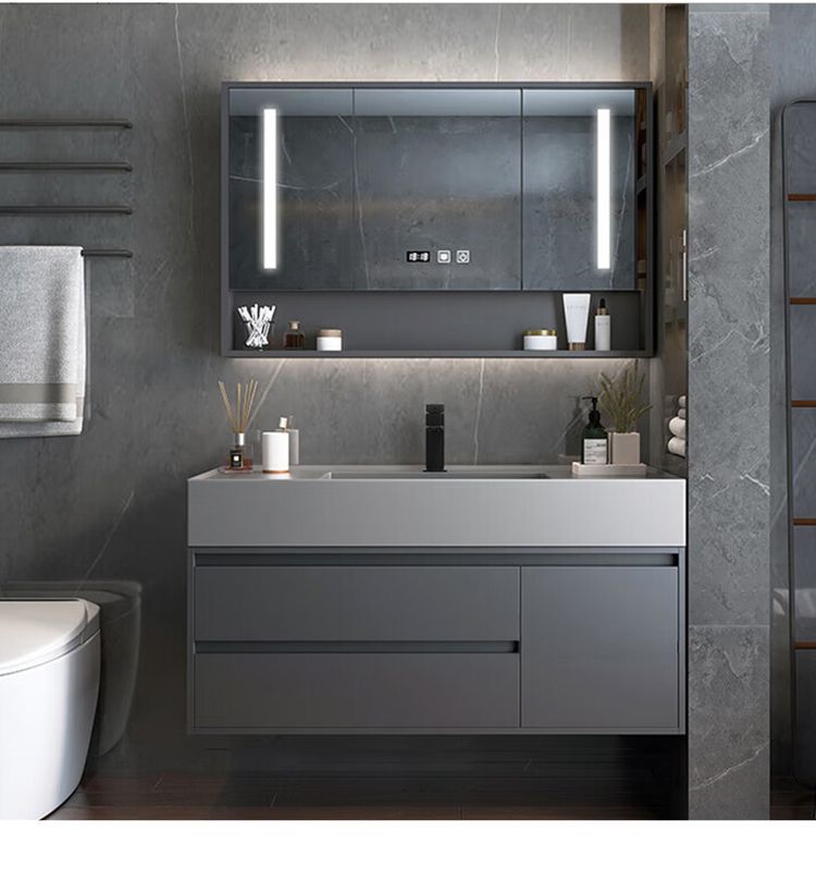 Chậu đá tích hợp đèn tủ phòng tắm thông minh sang trọng kết hợp bồn cầu bệ rửa mặt rửa tay Bộ tủ gương gắn đá