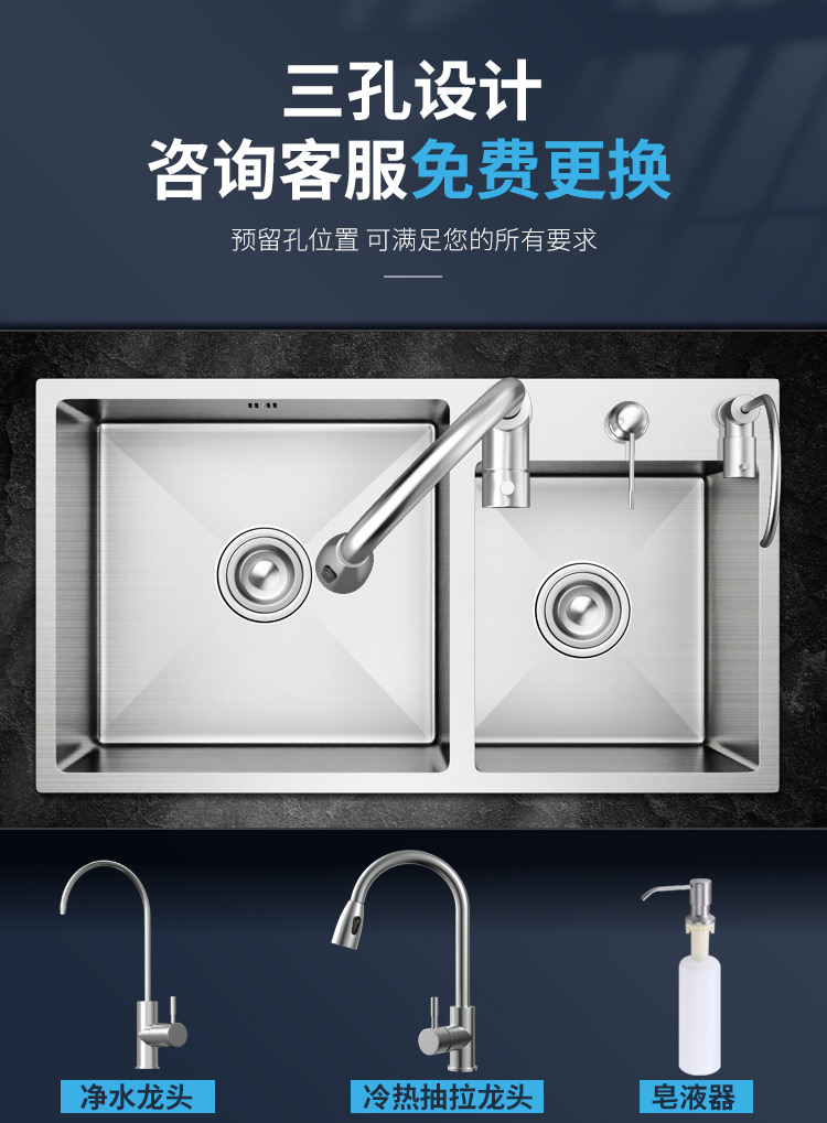 Sản phẩm nổi bật với các tính năng: Chậu rửa bát đôi bể bơi bằng thép không gỉ SUS304 thủ công dày bồn rửa đặt trên và dưới quầy rửa tay. Quý khách có nhu cầu mua Chậu rửa nhập khẩu vui lòng liên hệ với chúng tôi để được tư vấn hỗ trợ. Dịch vụ mua hàng Trung Quốc sẽ hỗ trợ quý khách mua hàng từ nhà cung cấp và giao tới tận tay quý khách hàng..