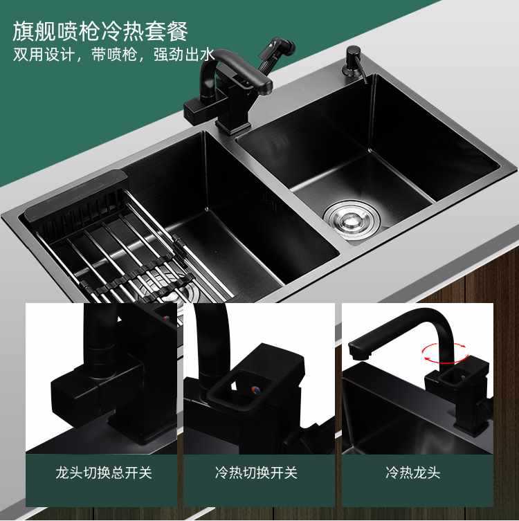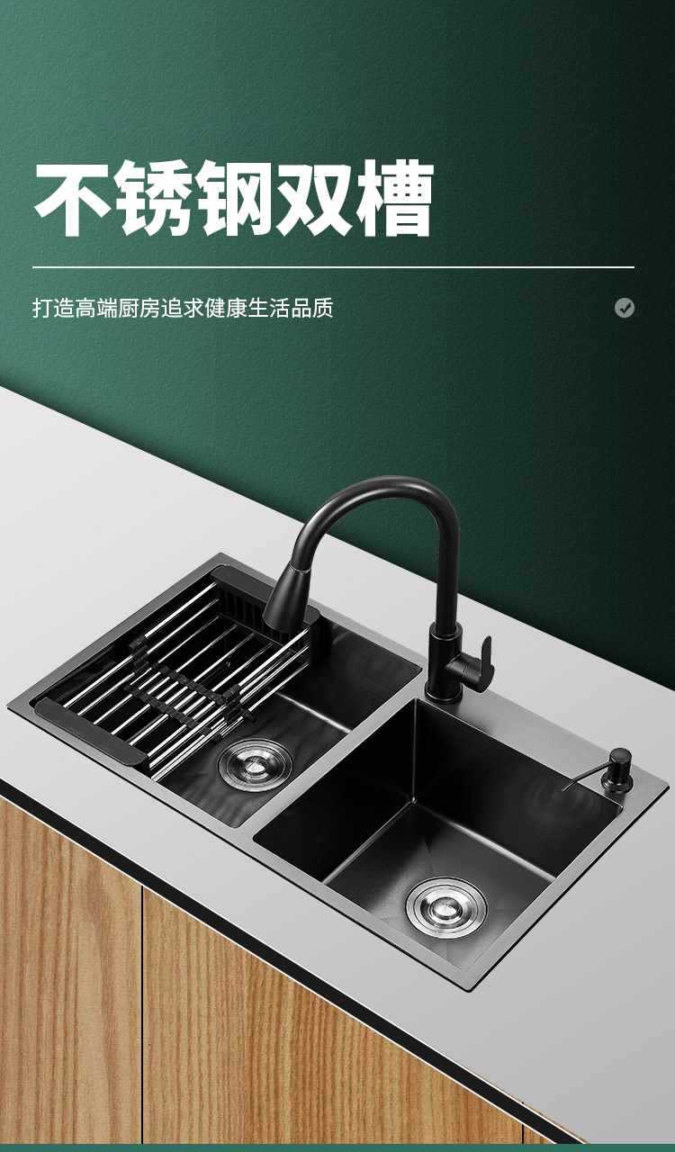Chậu rửa Nano 304 inox 304 bồn rửa đôi bồn rửa nhà bếp màu đen chậu rửa lớn gia đình dưới quầy khác là thiết bị nằm trong danh mục Đồ nhà hàng > Chậu rửa, được thiết kế chuyên dụng cho các nhà hàng cần sự tiện nghi và chuyên nghiệp.