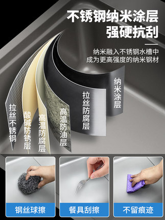 Chậu rửa nano Chậu rửa inox 304 chậu rửa bát gia đình chậu rửa bên phải thoát nước rãnh đơn lớn màu xám