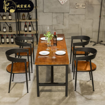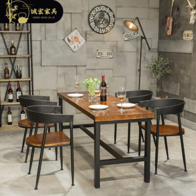 Chenghong Mỹ Bàn Ăn Gỗ Nguyên Chất Chắc Chắn Thương Mại Bàn Hình Chữ Nhật Kết Hợp Cửa Hàng Cà Phê Cửa Hàng Thịt Nướng Bàn Ghế