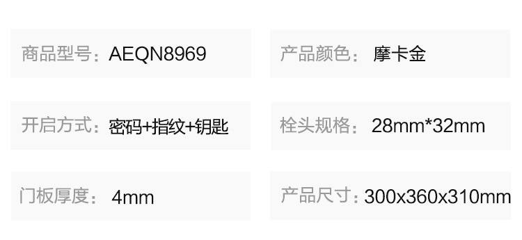 Sản phẩm nổi bật với các tính năng: Chenguang Bán buôn an toàn Dòng AEQN8969 Văn phòng Tài liệu có giá trị Áo giáp vàng Hộp an toàn mật khẩu vân tay. Quý khách có nhu cầu mua Két sắt nhập khẩu vui lòng liên hệ với chúng tôi để được tư vấn hỗ trợ. Dịch vụ mua hàng Trung Quốc sẽ hỗ trợ quý khách mua hàng từ nhà cung cấp và giao tới tận tay quý khách hàng..