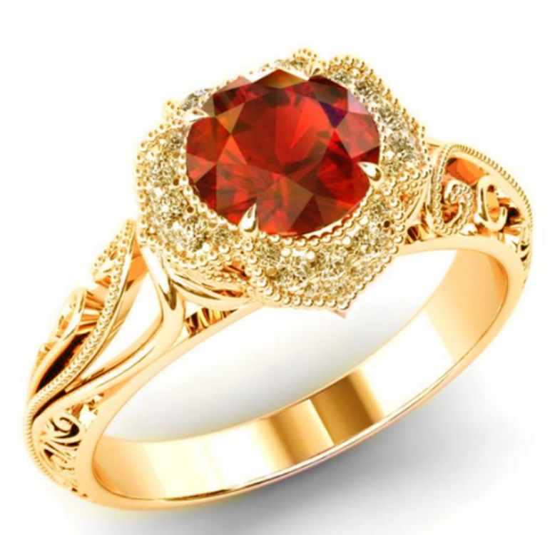 Chenrui trang sức nhẫn chúc ba màu dát đá quý zircon đỏ hoa văn nhẫn nữ quốc tế nổ phụ kiện