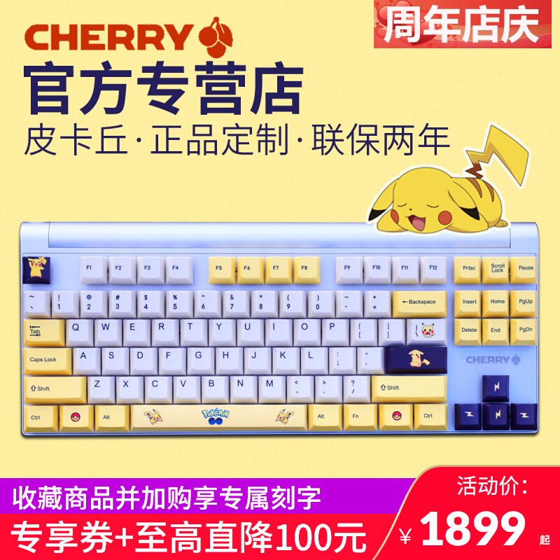 CHERRY Cherry MX8.0 bàn phím cơ Pikachu phiên bản tùy chỉnh của trò chơi đánh máy văn phòng có đèn nền chơi game trục đen trục xanh trà trục đỏ có dây hộp đựng đạn khung hợp kim 87 phím