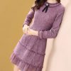 CHỈ2019 mùa đông mới màu đỏ mỏng dài váy Pháp cho nữ | 120107511