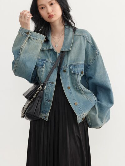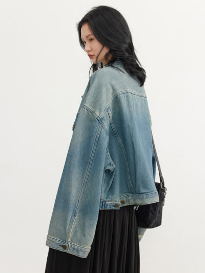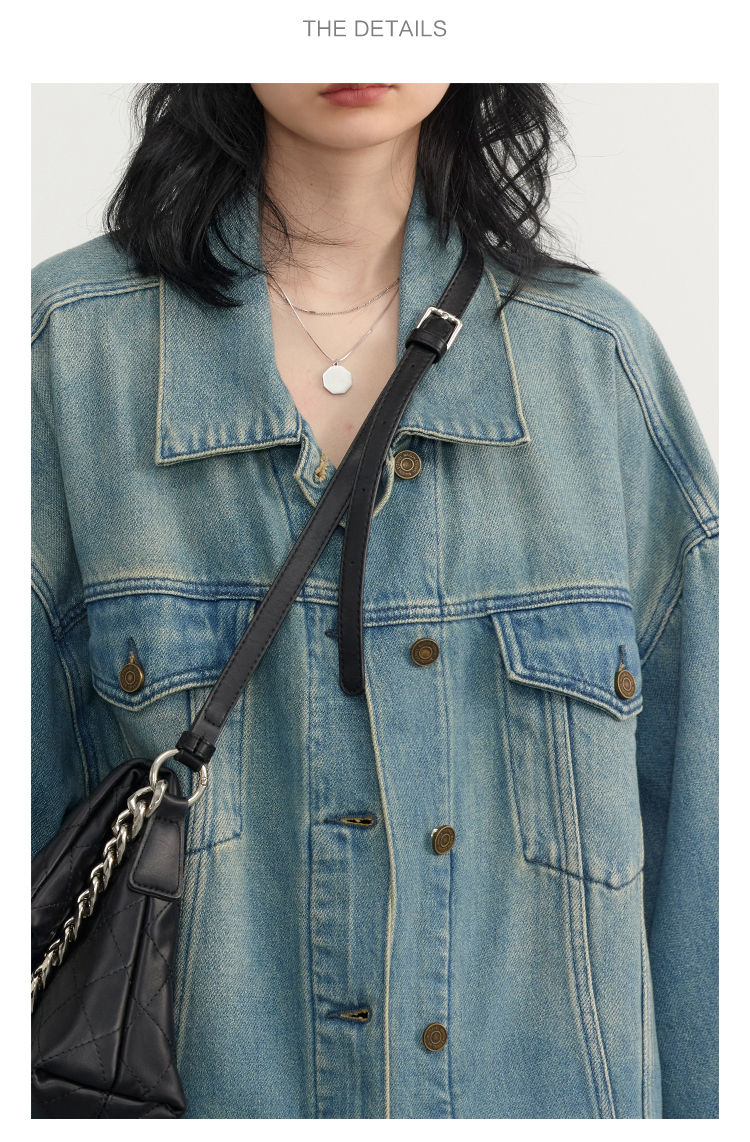 CHICVEN “Khám Phá Bản Thân” Mùa Xuân 2023 Retro Đã Giặt Nút Kim Loại Áo Khoác Denim Áo Khoác Nữ