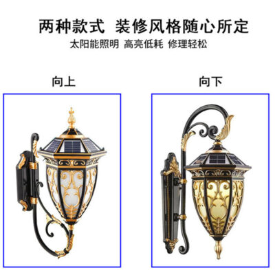 Chiếu sáng ngoài trời năng lượng mặt trời Đèn tường Châu Âu Sân vườn Mỹ ngoài trời hành lang lối đi treo tường phong cảnh Đèn LED
