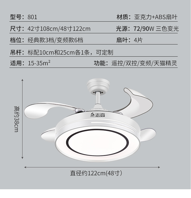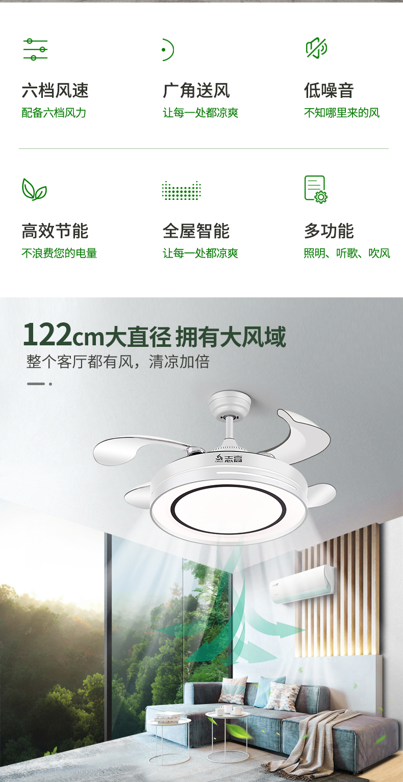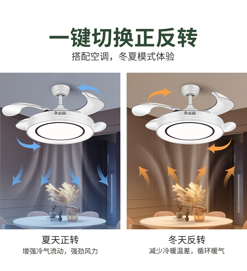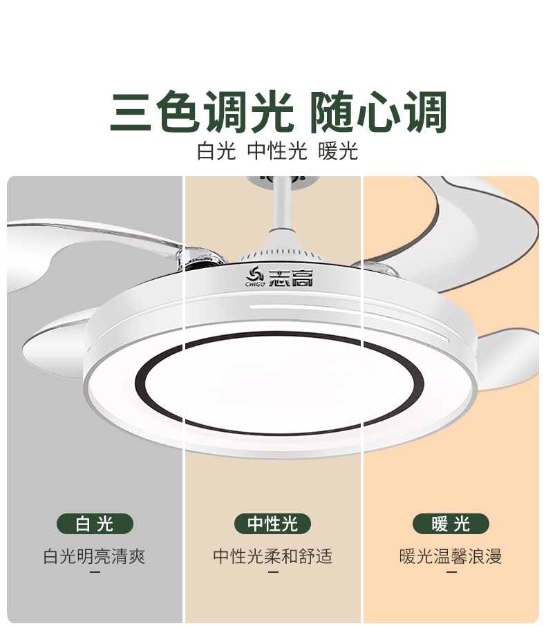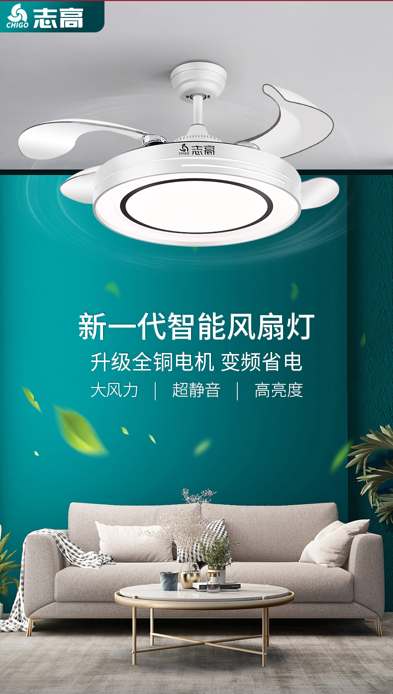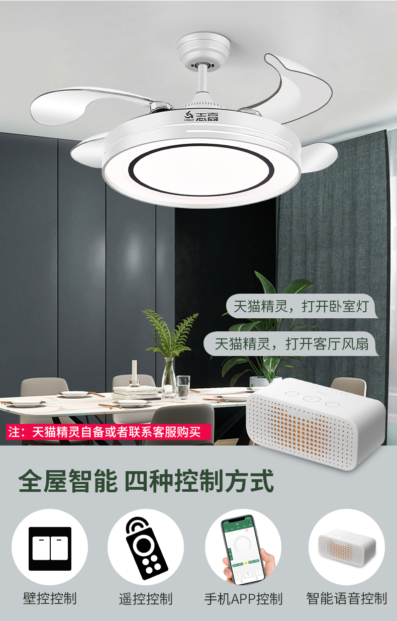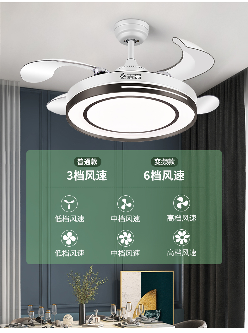Chigo quạt vô hình đèn phòng khách phòng ngủ phòng ăn hộ gia đình đèn quạt trần hiện đại một với đèn quạt điện