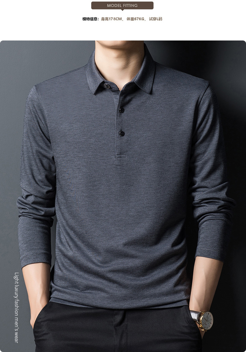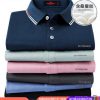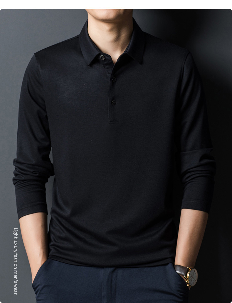 Chim gõ kiến mùa xuân và mùa thu nam giới trung niên lụa tằm dài tay áo phông ve áo màu sắc quần áo polo đáy áo sơ mi nam